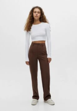 PULL & BEAR With Seam Detail – Broek – Mottled Dark Brown