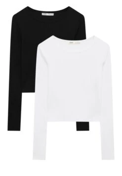 PULL & BEAR 2PackBasic Long Sleeve- Longsleeve – Metallic Black
