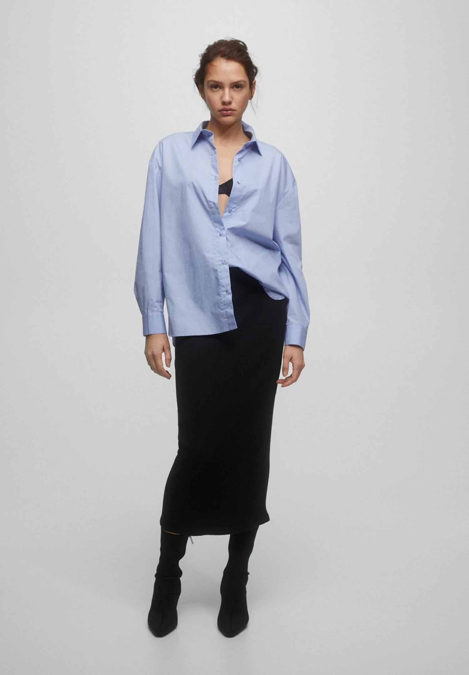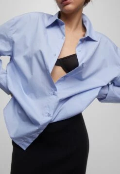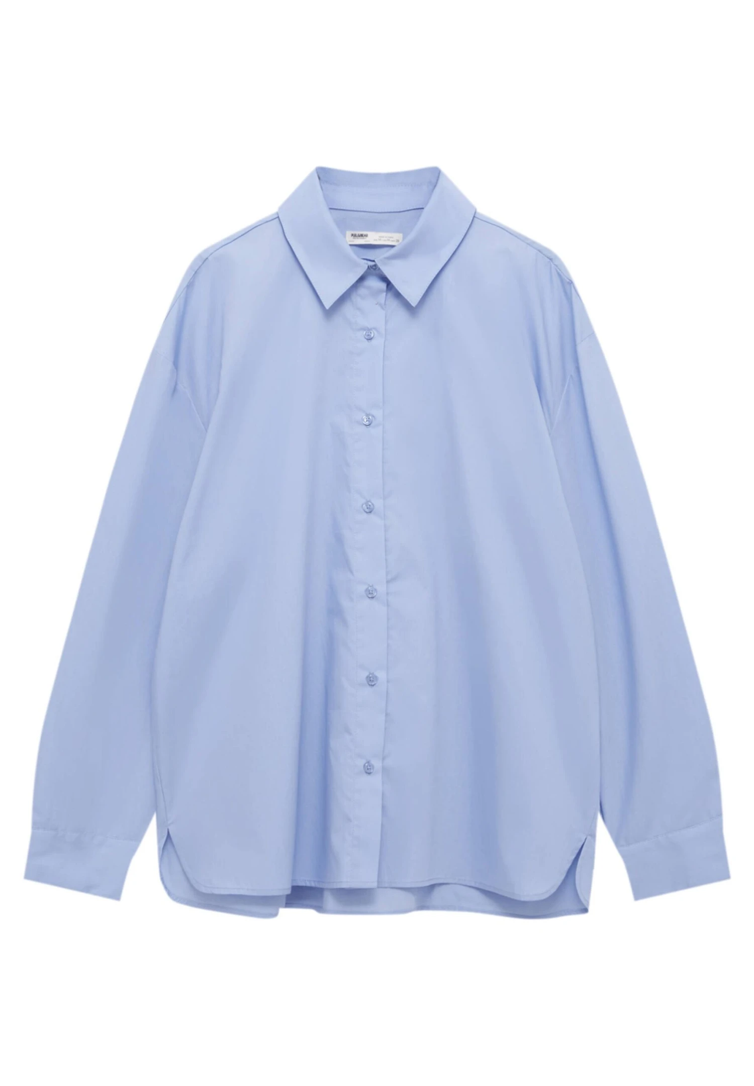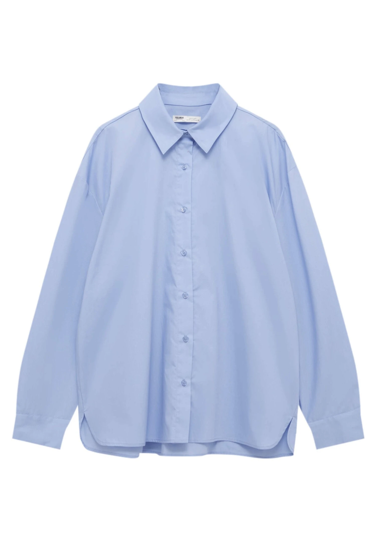 PULL & BEAR Basic-Popelin – Overhemdblouse – Stone Blue Denim