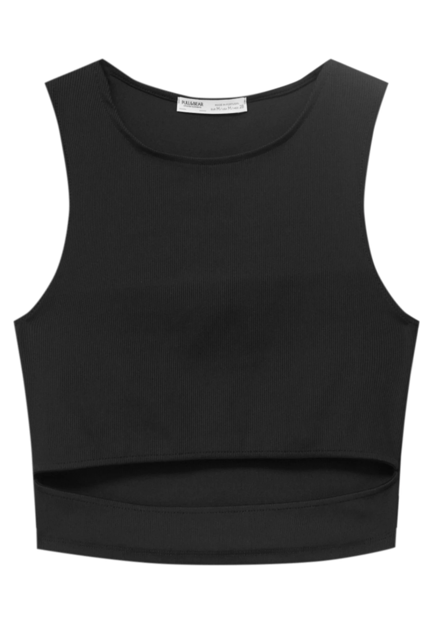 PULL & BEAR Basic With Cut-Out Detail – Crop Top – Top – Black