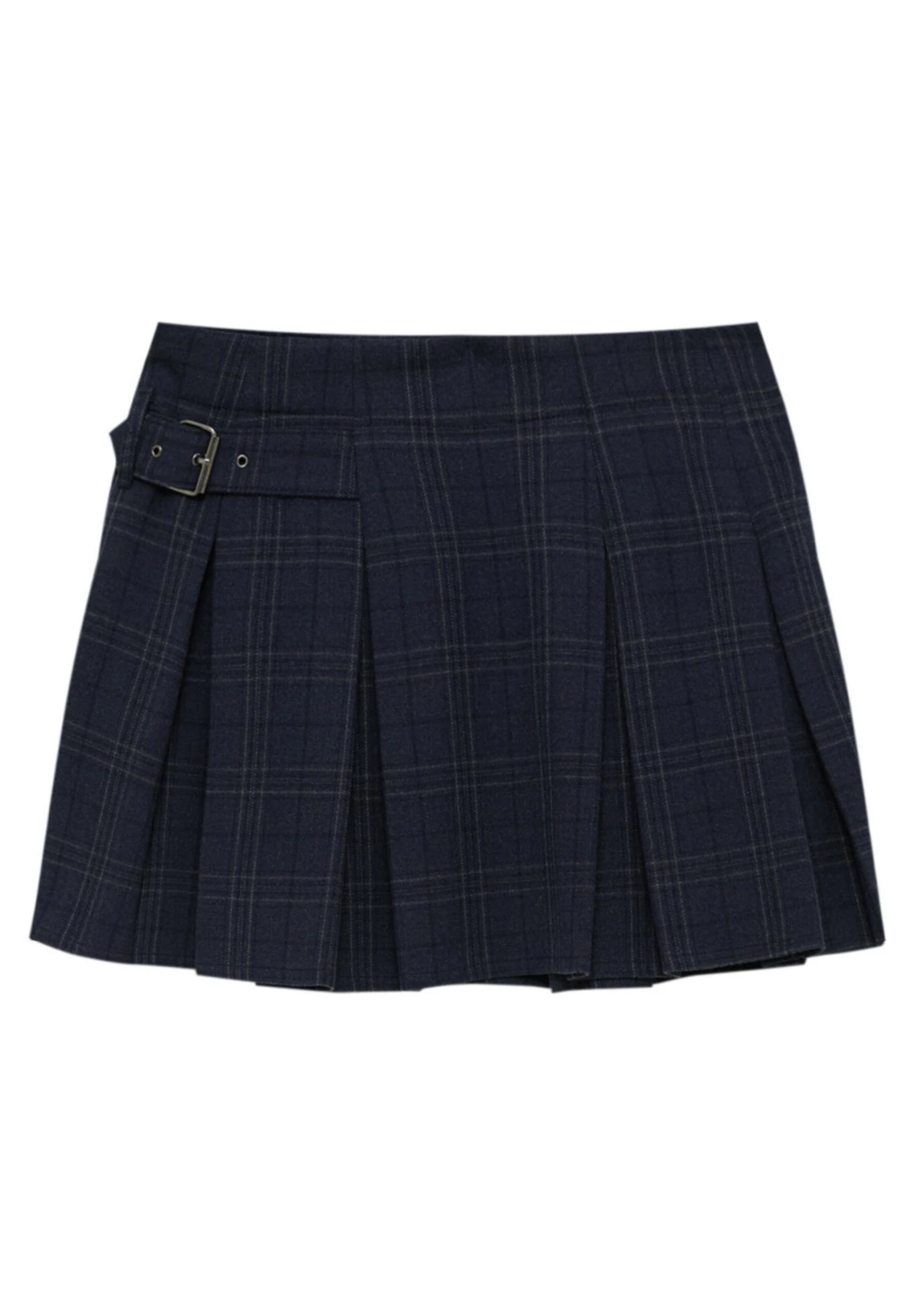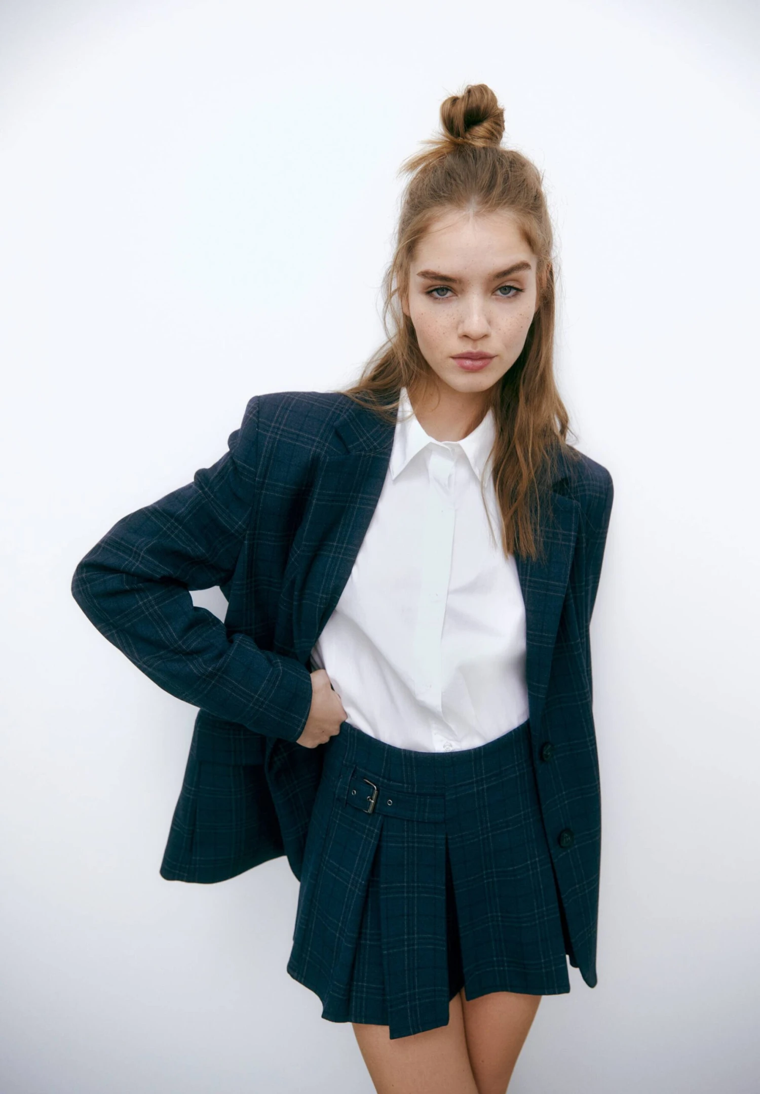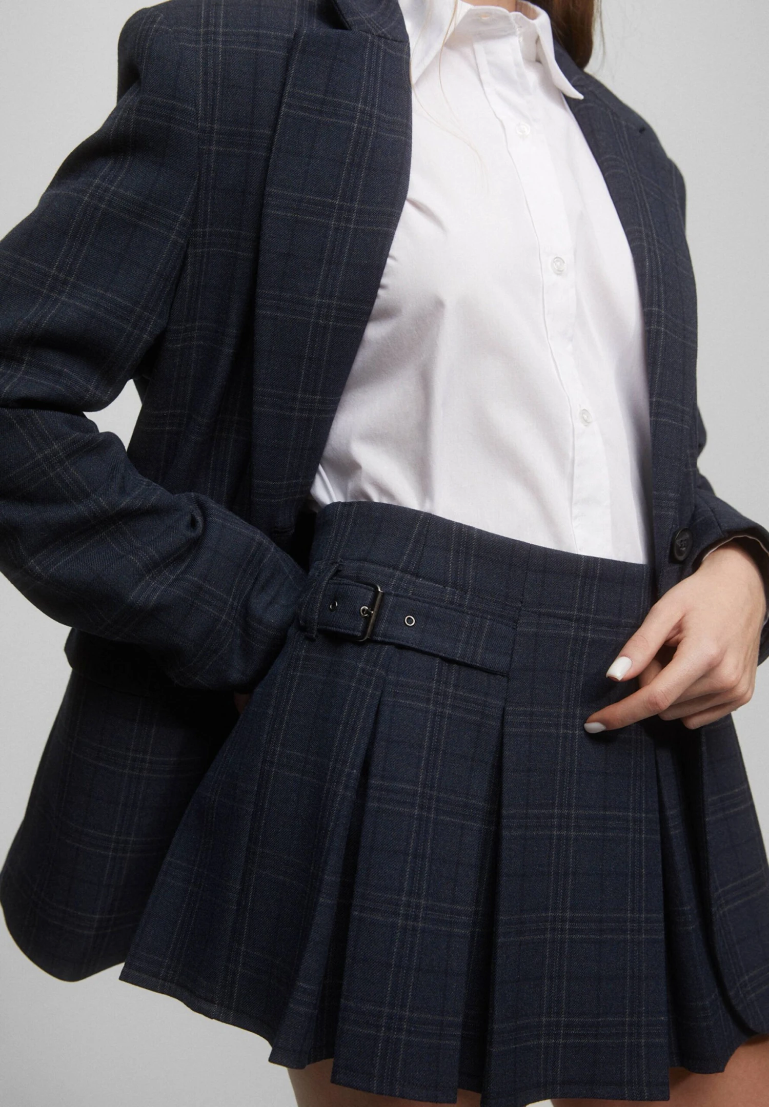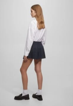 PULL & BEAR Check Box Pleat – Plooirok – Blue Denim