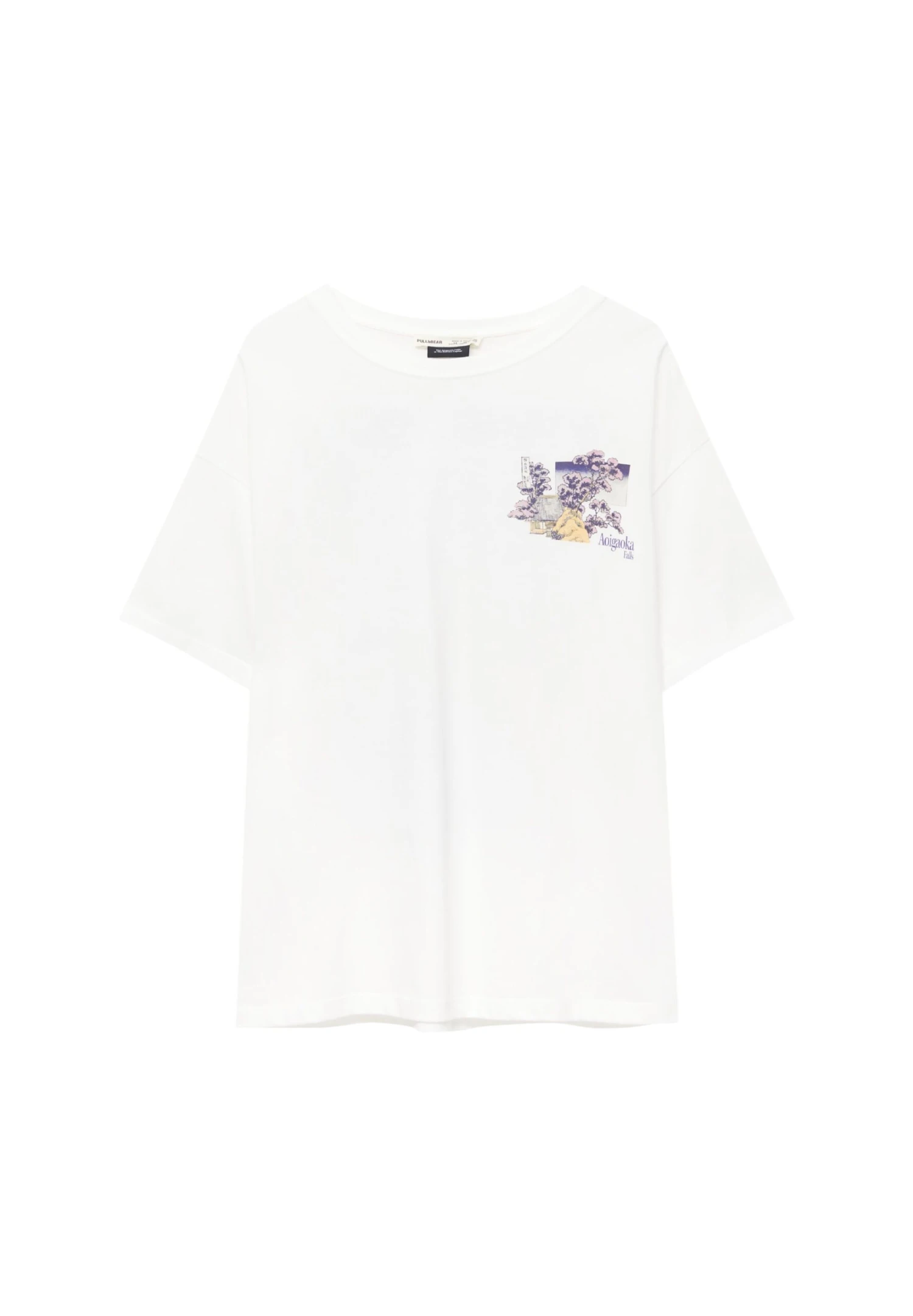 PULL & BEAR Cherry Tree Hokusai – T-Shirt Print – White
