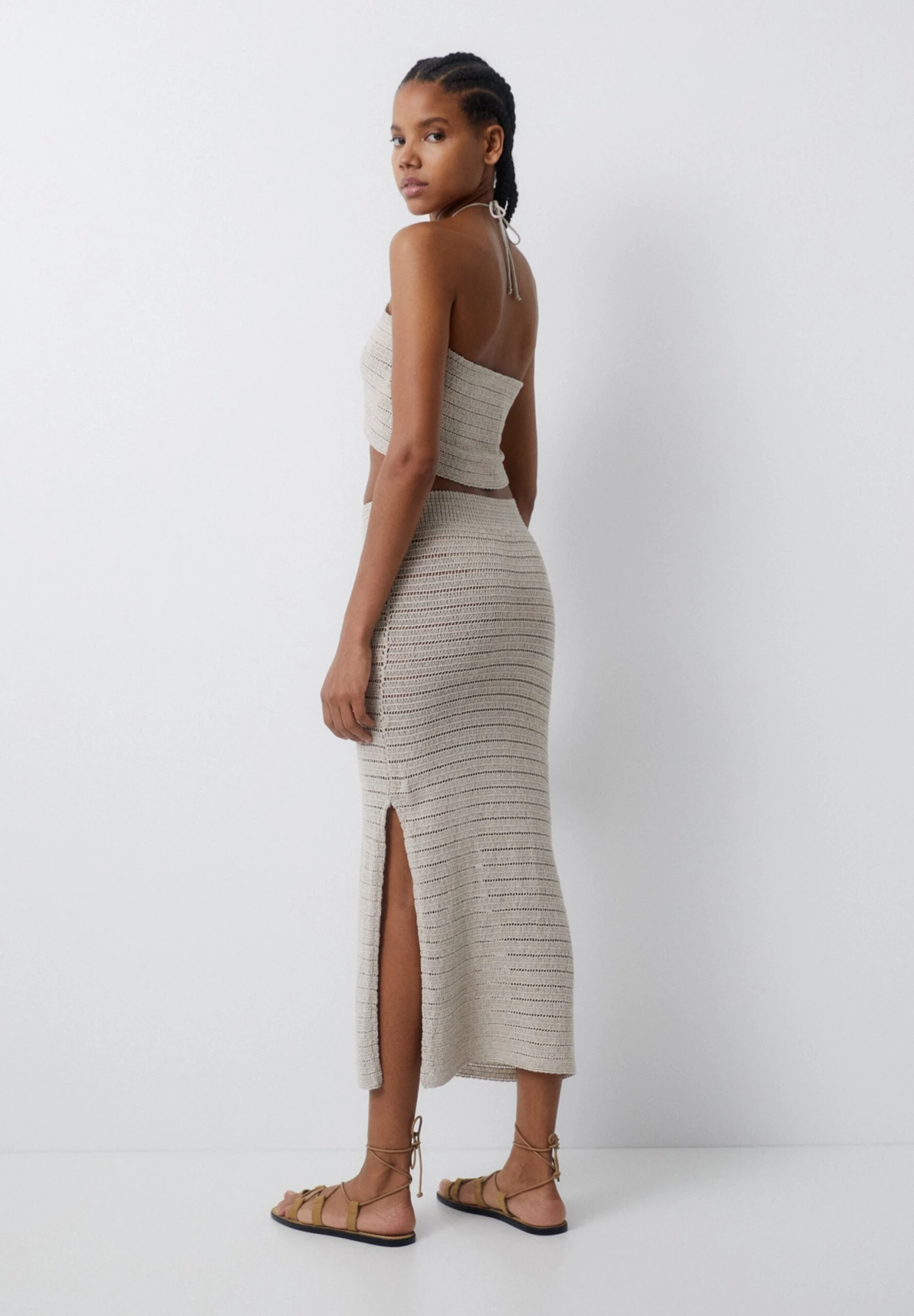 PULL & BEAR Crochet – A-Lijn Rok – Camel