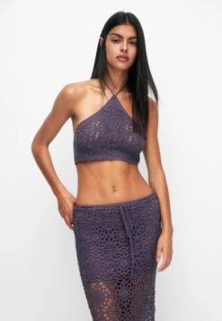 PULL & BEAR Crochet Halter- Top – Dark Purple