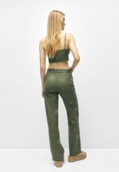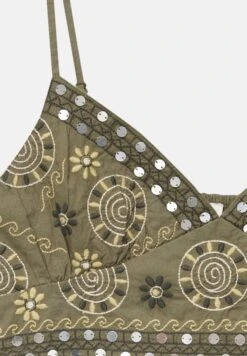 PULL & BEAR Crop Embroidered With Mirrors – Top – Green