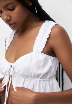 PULL & BEAR Crop With Bow Detail – Top – White