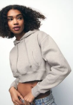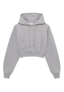 PULL & BEAR Cropped – Hoodie – Mottled Grey