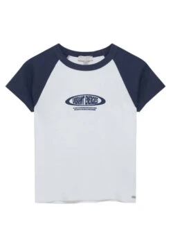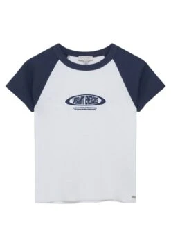 PULL & BEAR Cropped Raglan-Sleeve – T-Shirt Print – White