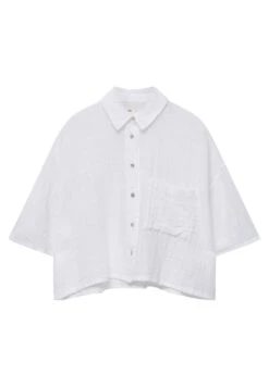PULL & BEAR Cropped Short Sleeve – Overhemdblouse – White