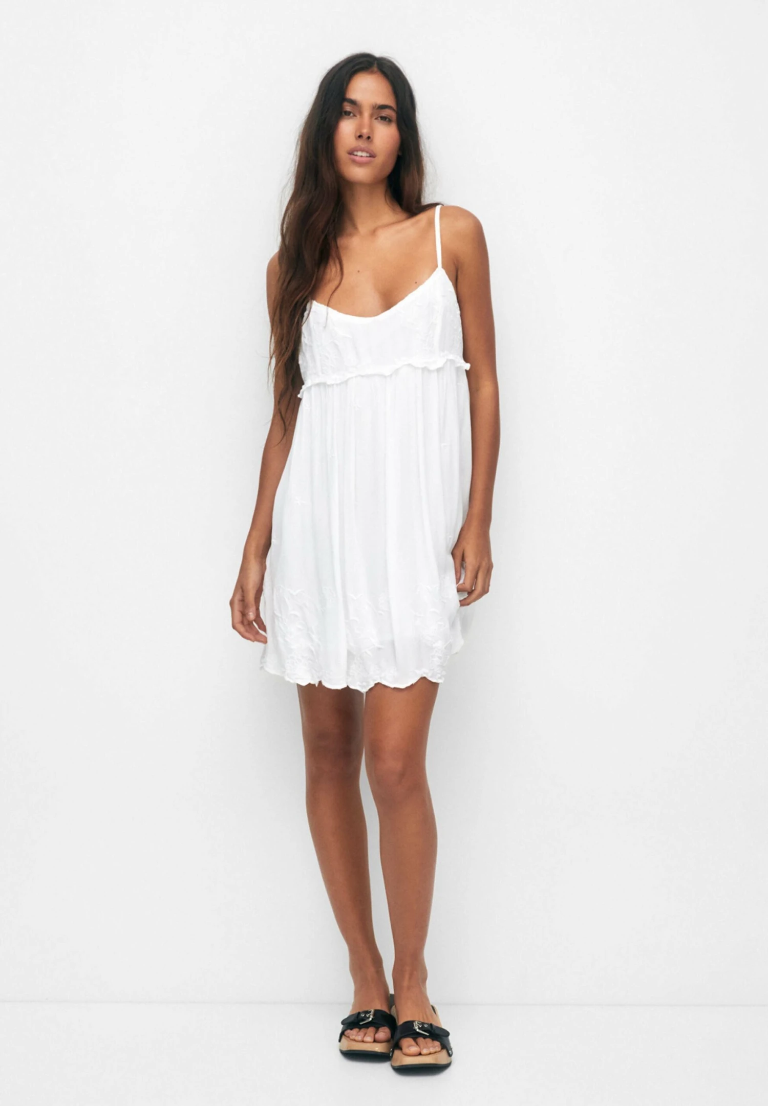 PULL & BEAR Embroidered Short – Jurk – White