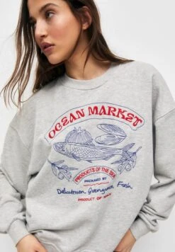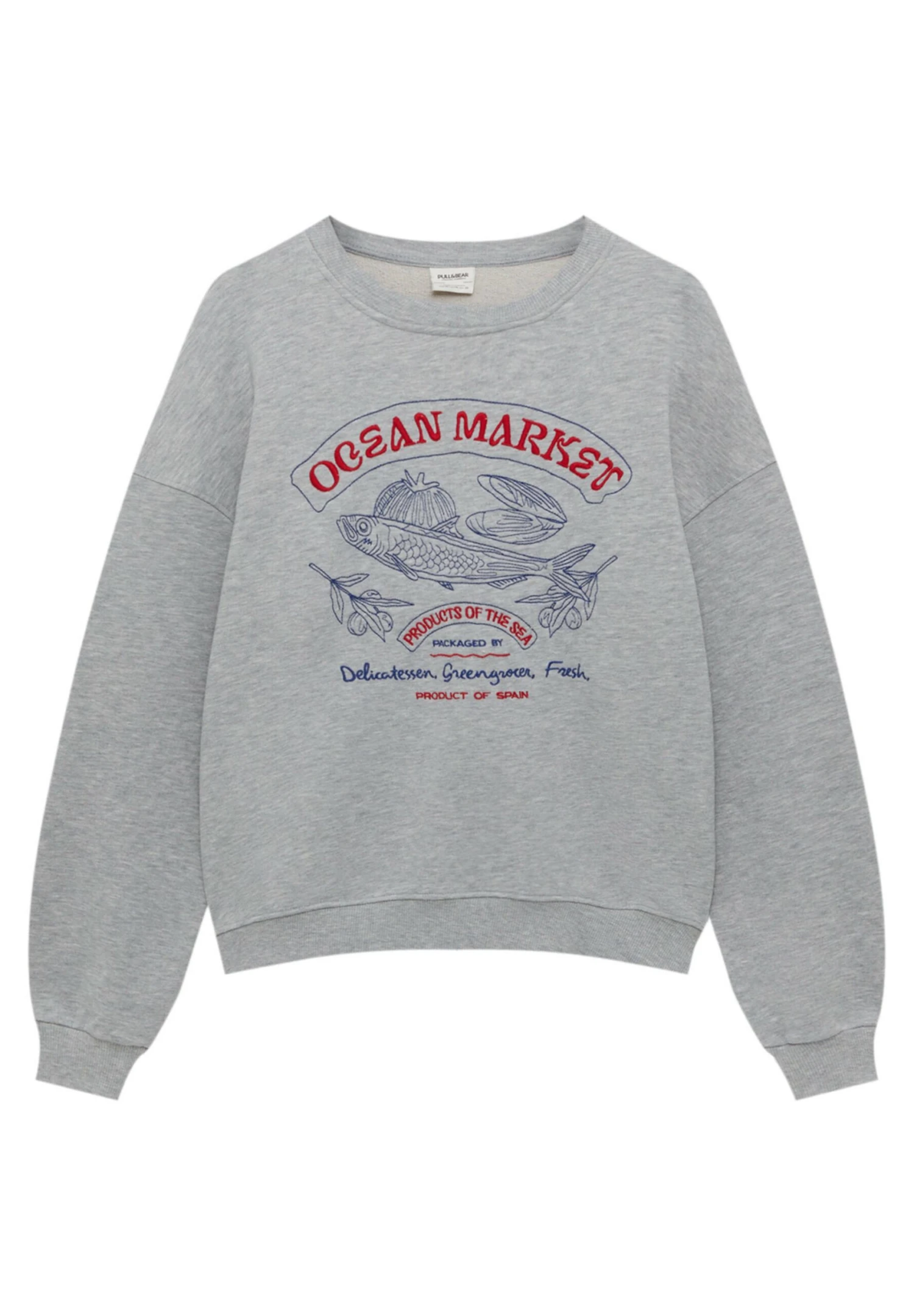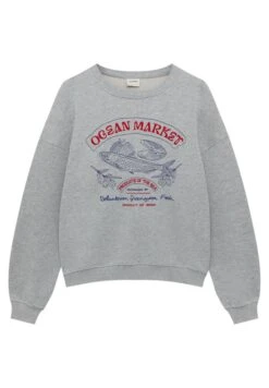 PULL & BEAR Embroidered Text – Sweater – Grey