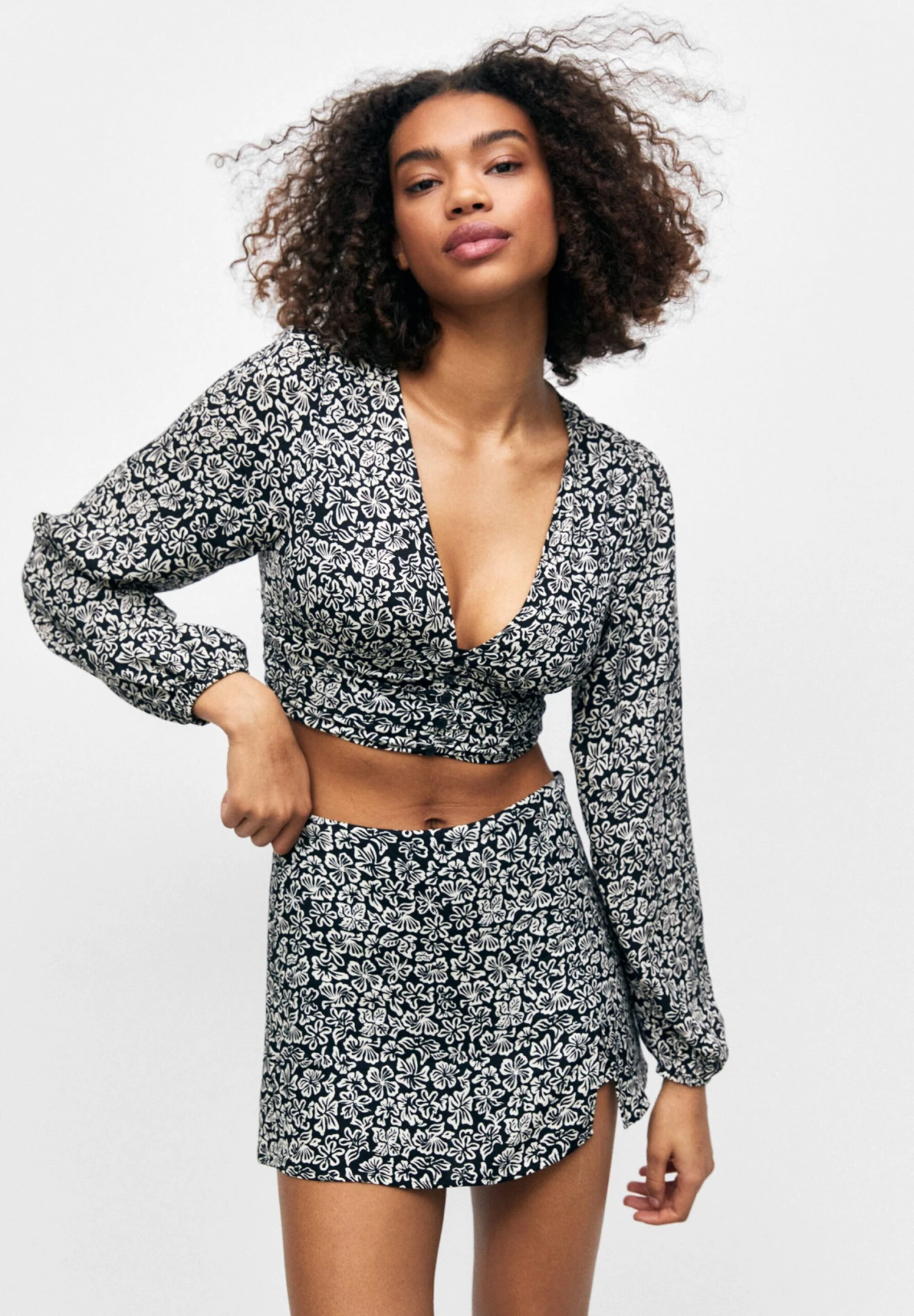 PULL & BEAR Floral Print – A-Lijn Rok – Mottled Black
