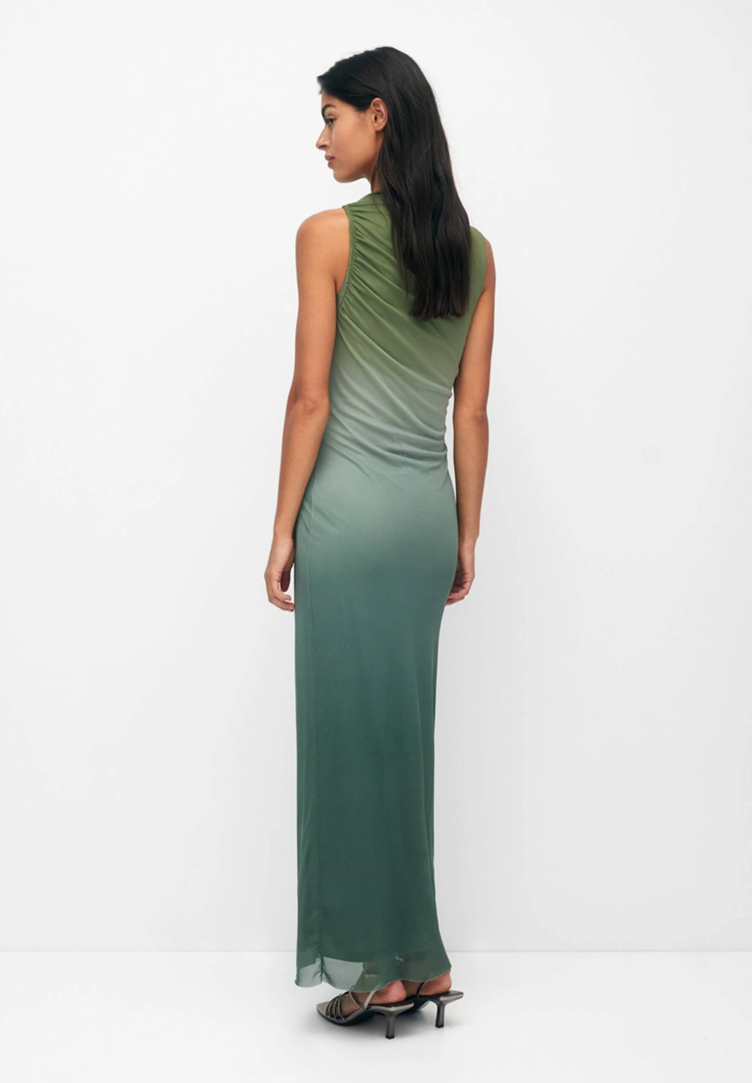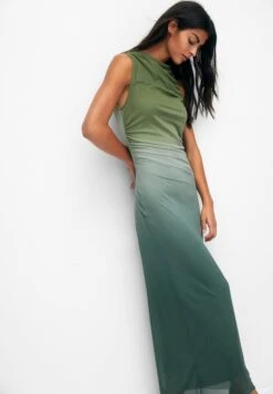 PULL & BEAR Gathered Tie-Dye With Asymmetric Hem – Maxi-Jurk – Green