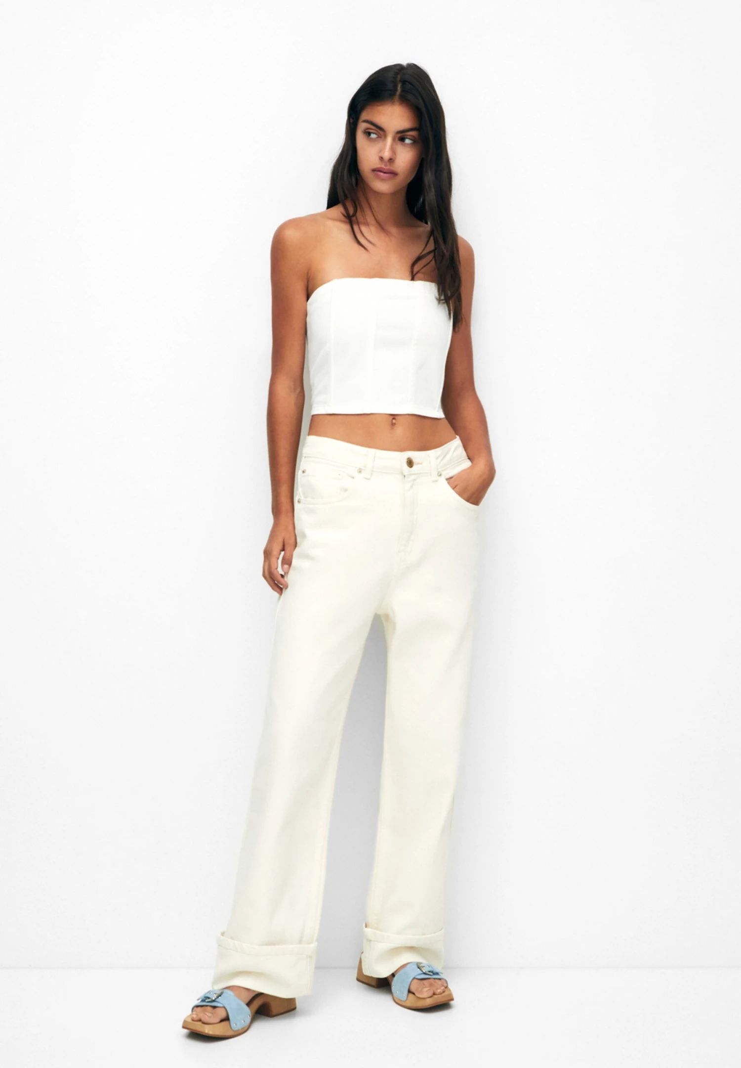 PULL & BEAR High-Waist Baggy – Straight Leg Jeans – Beige