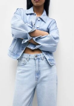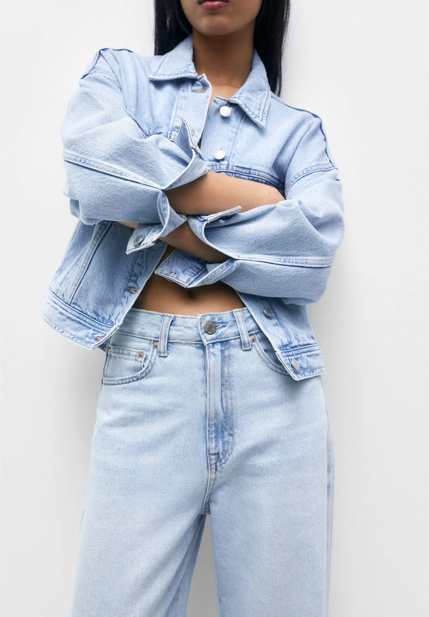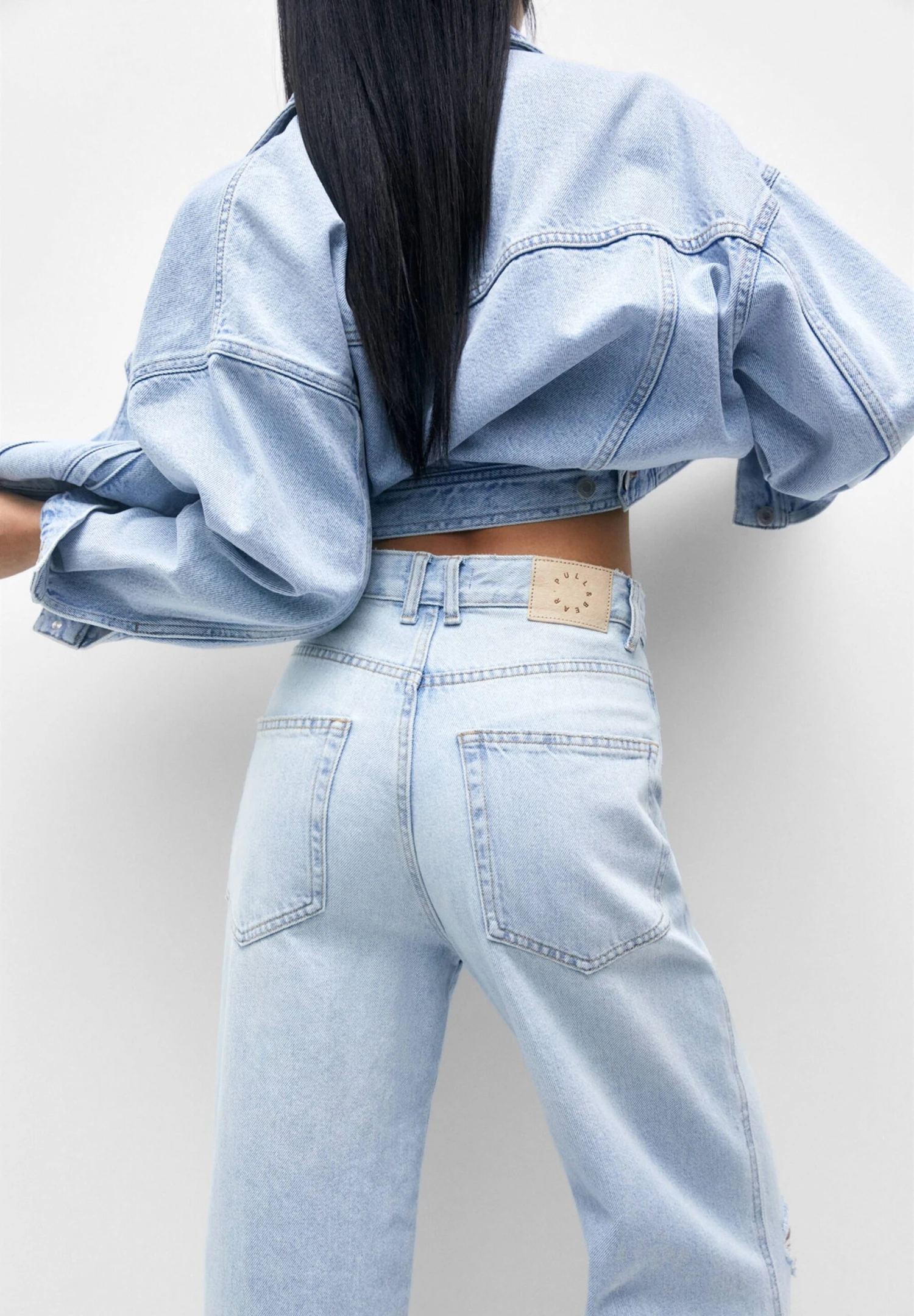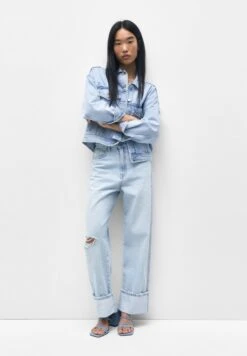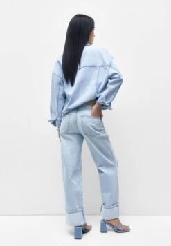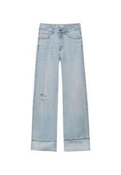 PULL & BEAR High-Waist Baggy Turn-Up- Relaxed Fit Jeans – Blue