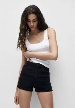 PULL & BEAR High Waist- Jeansshort – Mottled Black