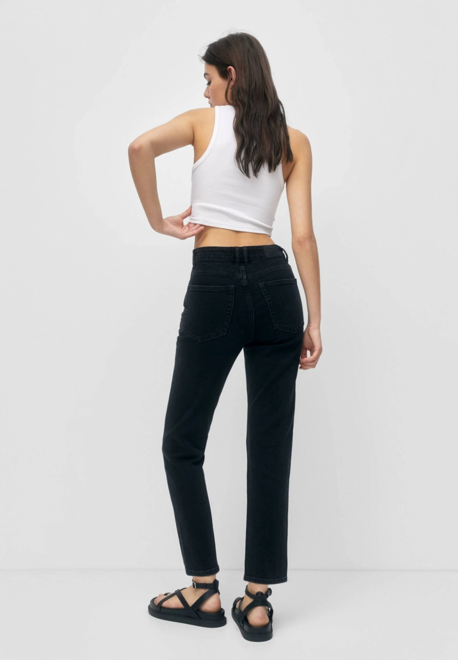 PULL & BEAR High Waist Mom – Slim Fit Jeans – Mottled Black