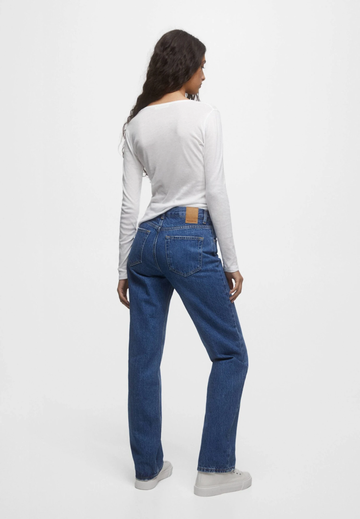 PULL & BEAR High Waist – Straight Leg Jeans – Dark Blue