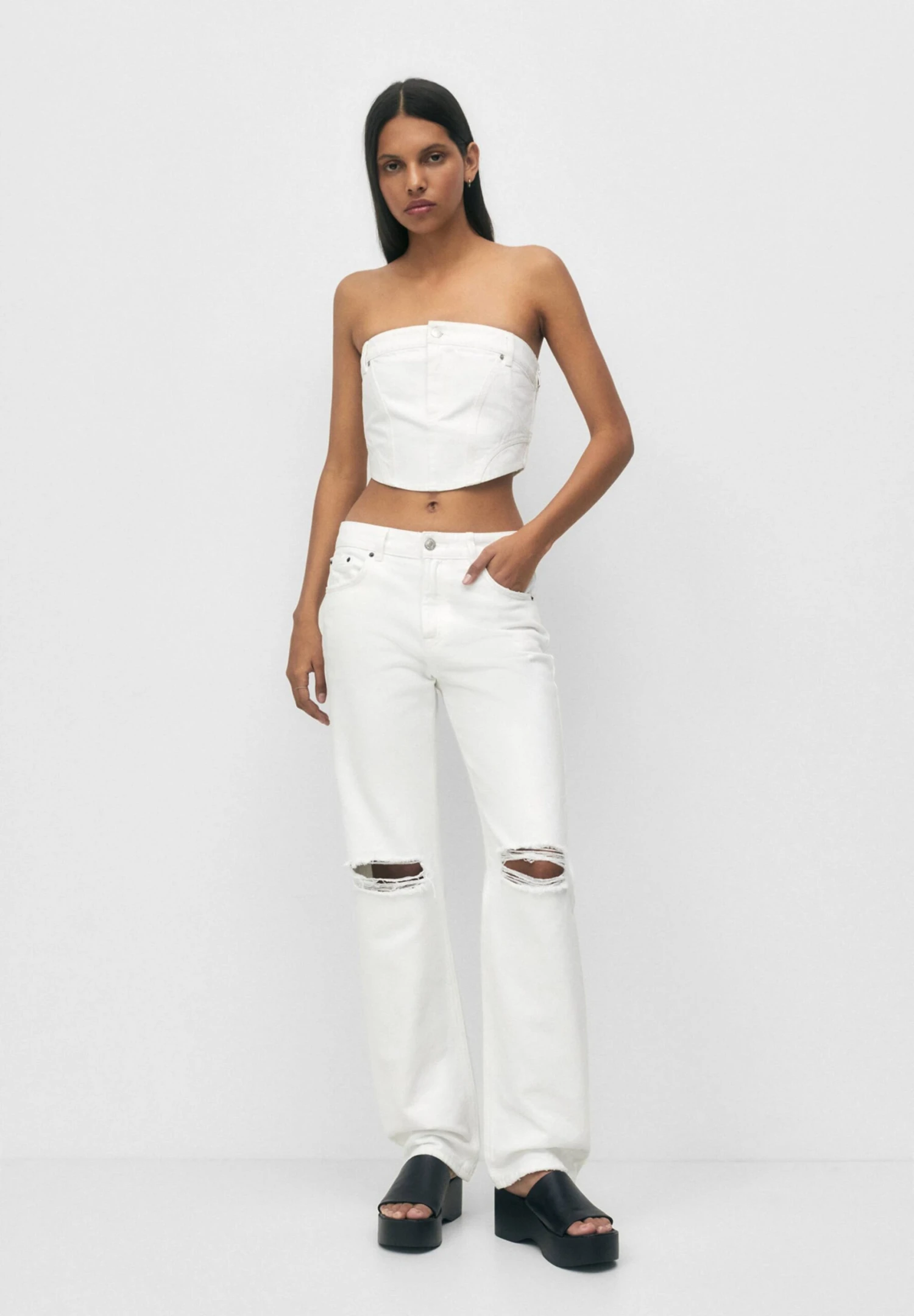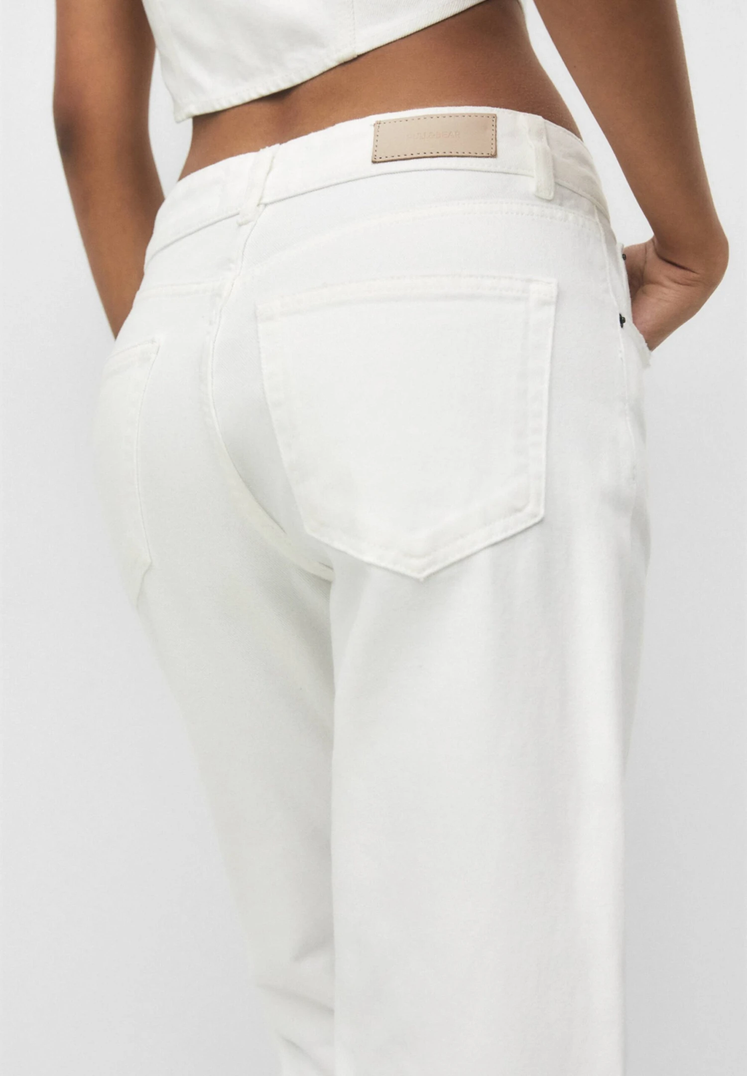 PULL & BEAR High Waist- Straight Leg Jeans – White