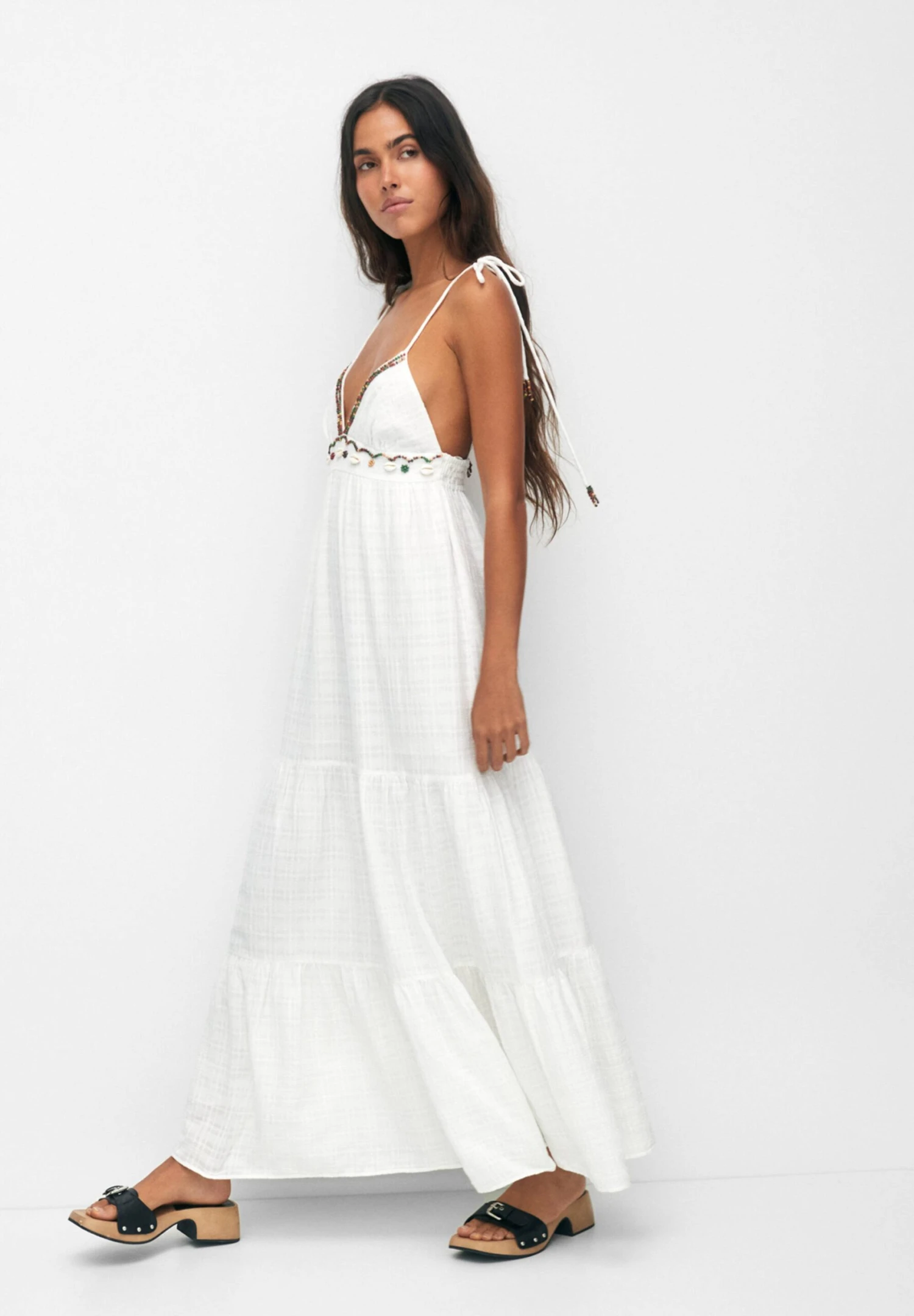 PULL & BEAR Long Seashell – Maxi-Jurk – White