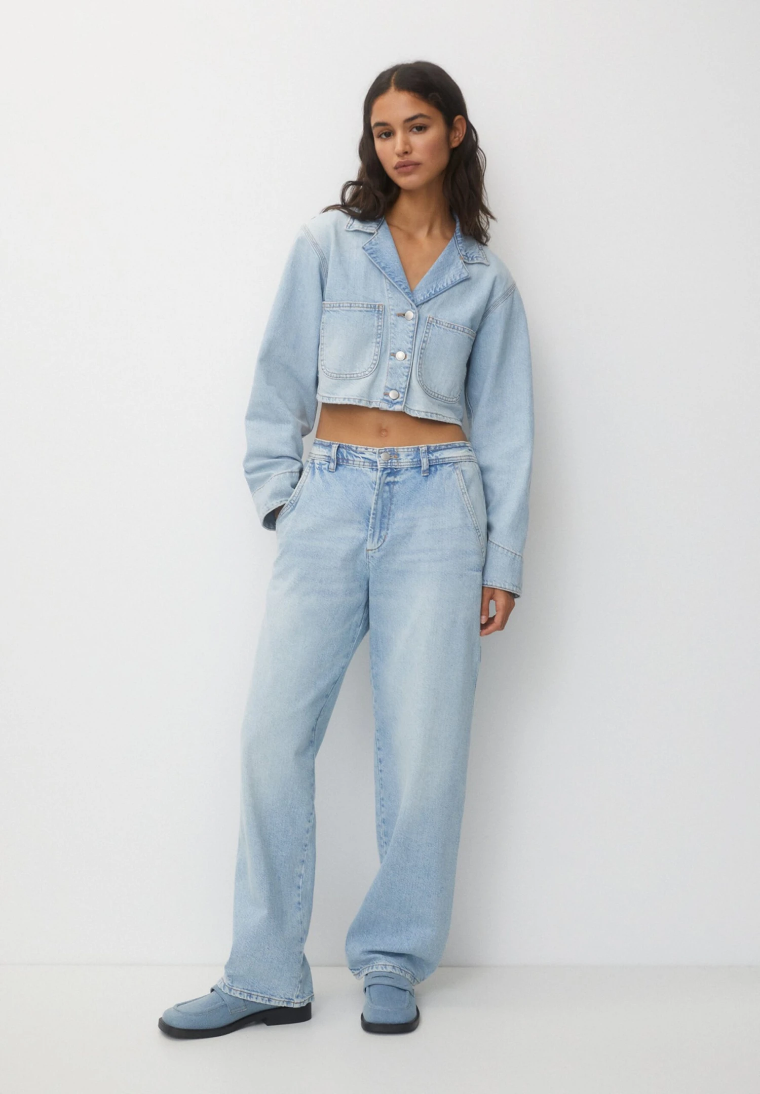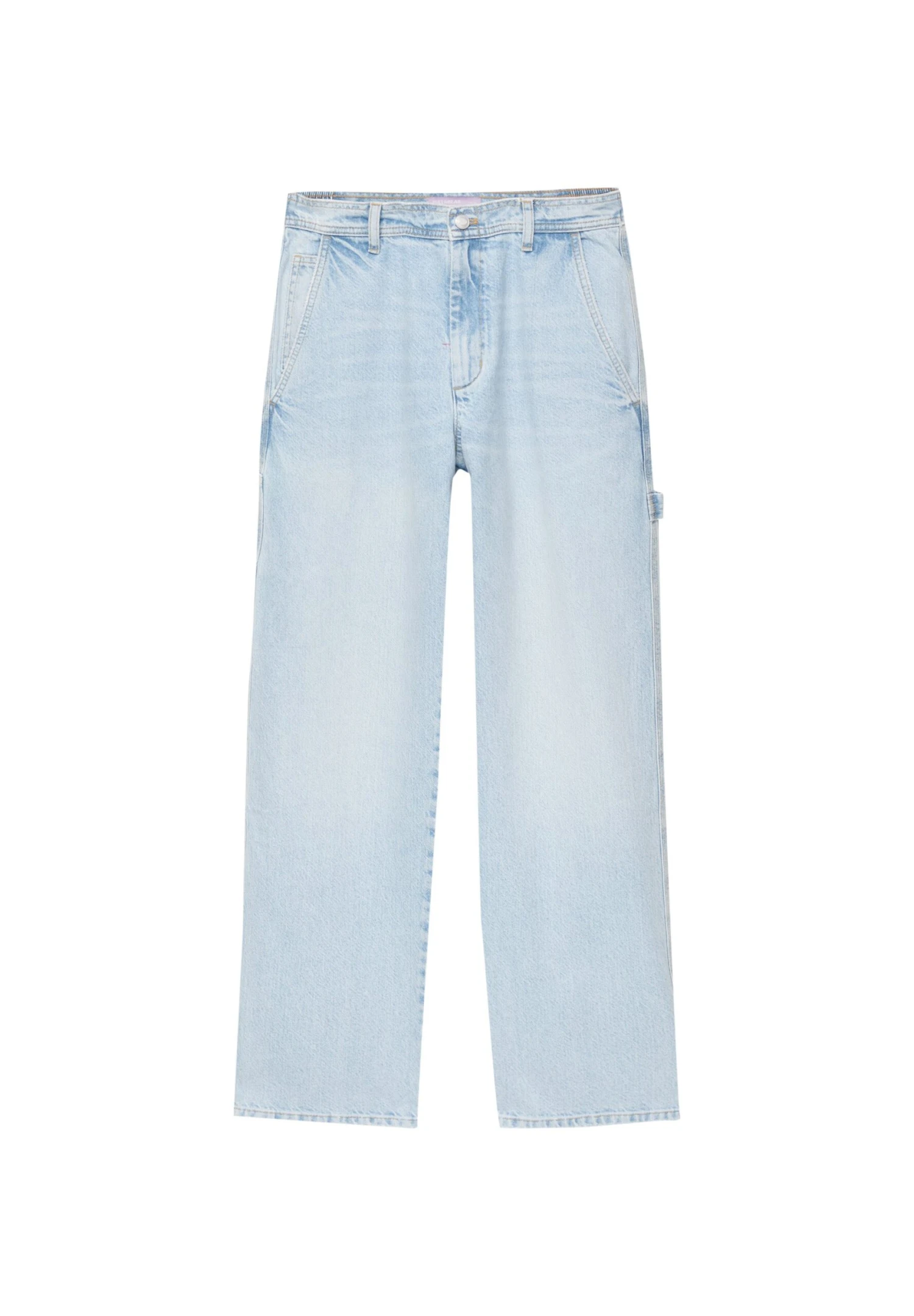 PULL & BEAR Low-Rise Carpenter – Straight Leg Jeans – Light Blue Denim
