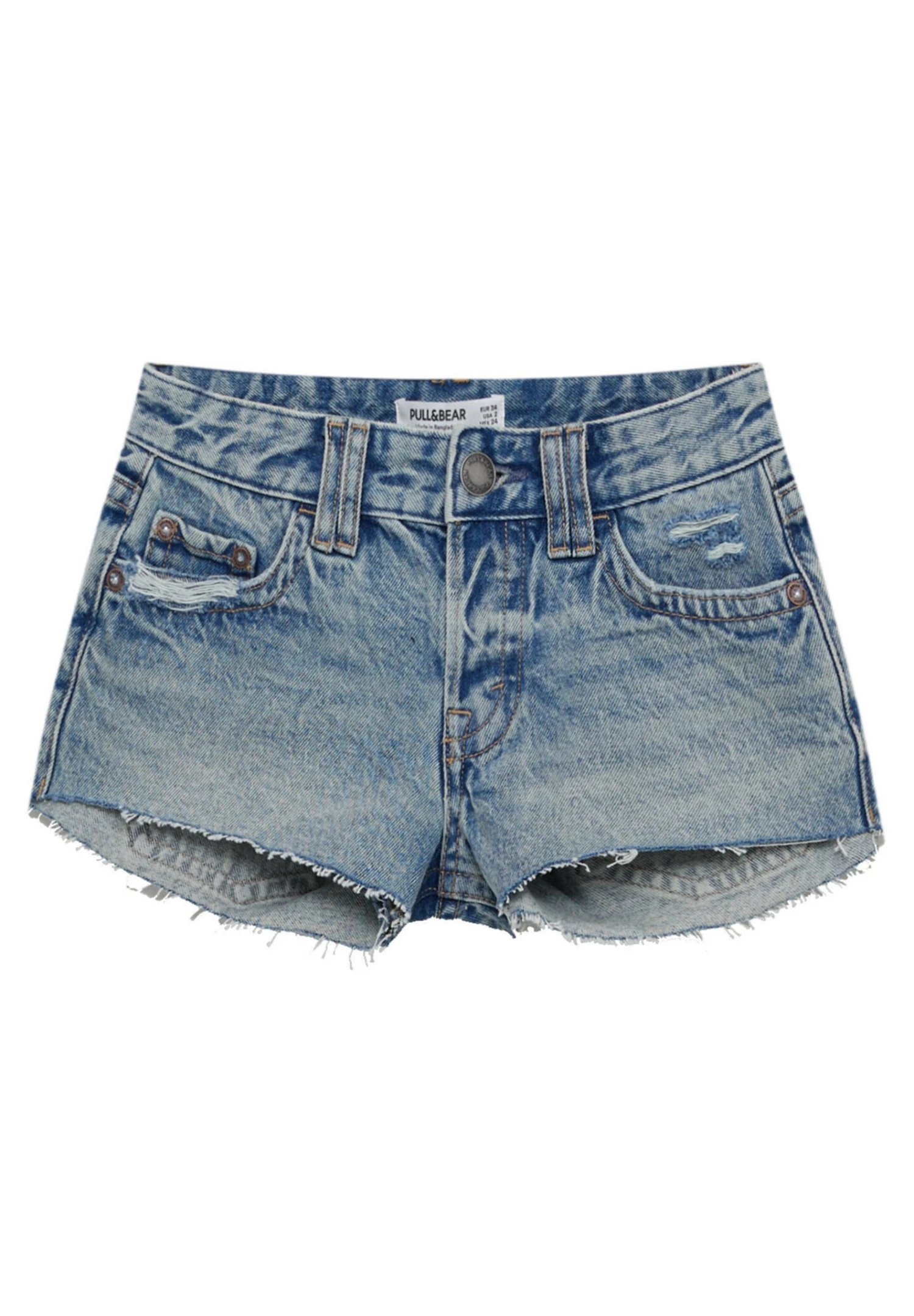 PULL & BEAR Low Waist – Jeansshort – Blue Denim