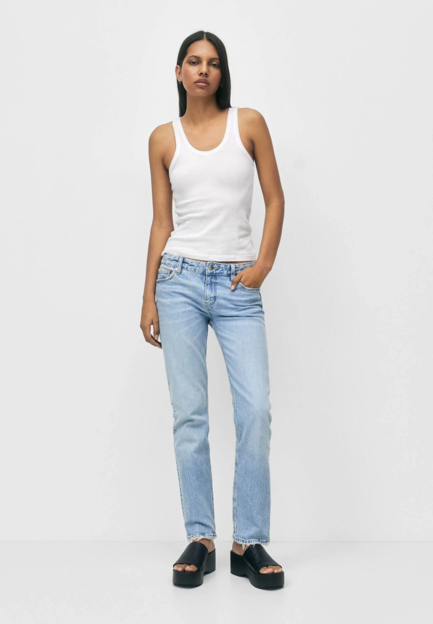PULL & BEAR Low-Waist – Slim Fit Jeans – Stone Blue Denim