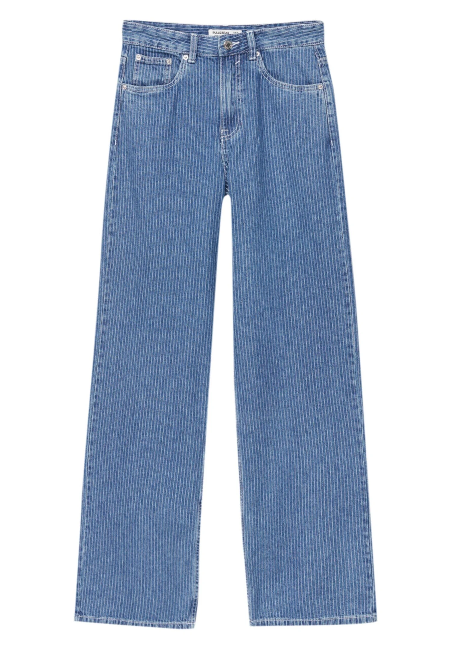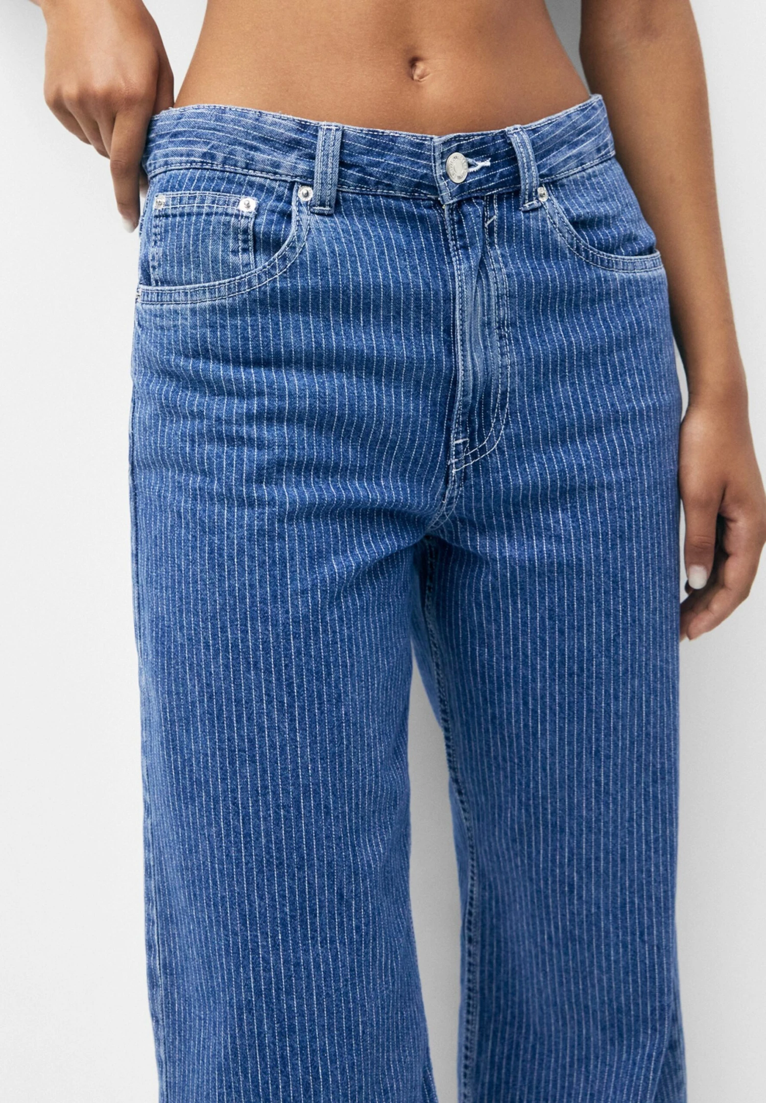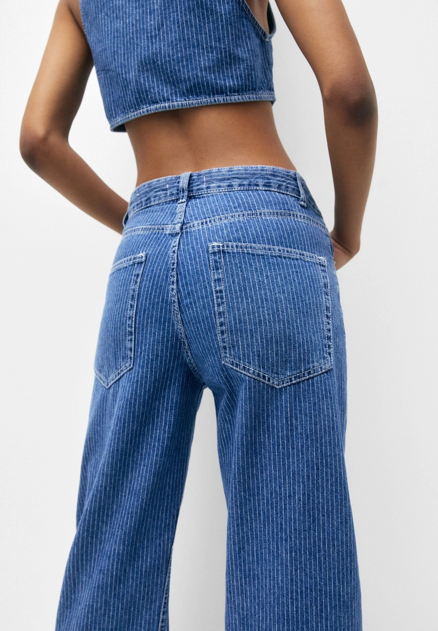 PULL & BEAR Mid-Rise Striped Baggy- Flared Jeans – Blue Denim