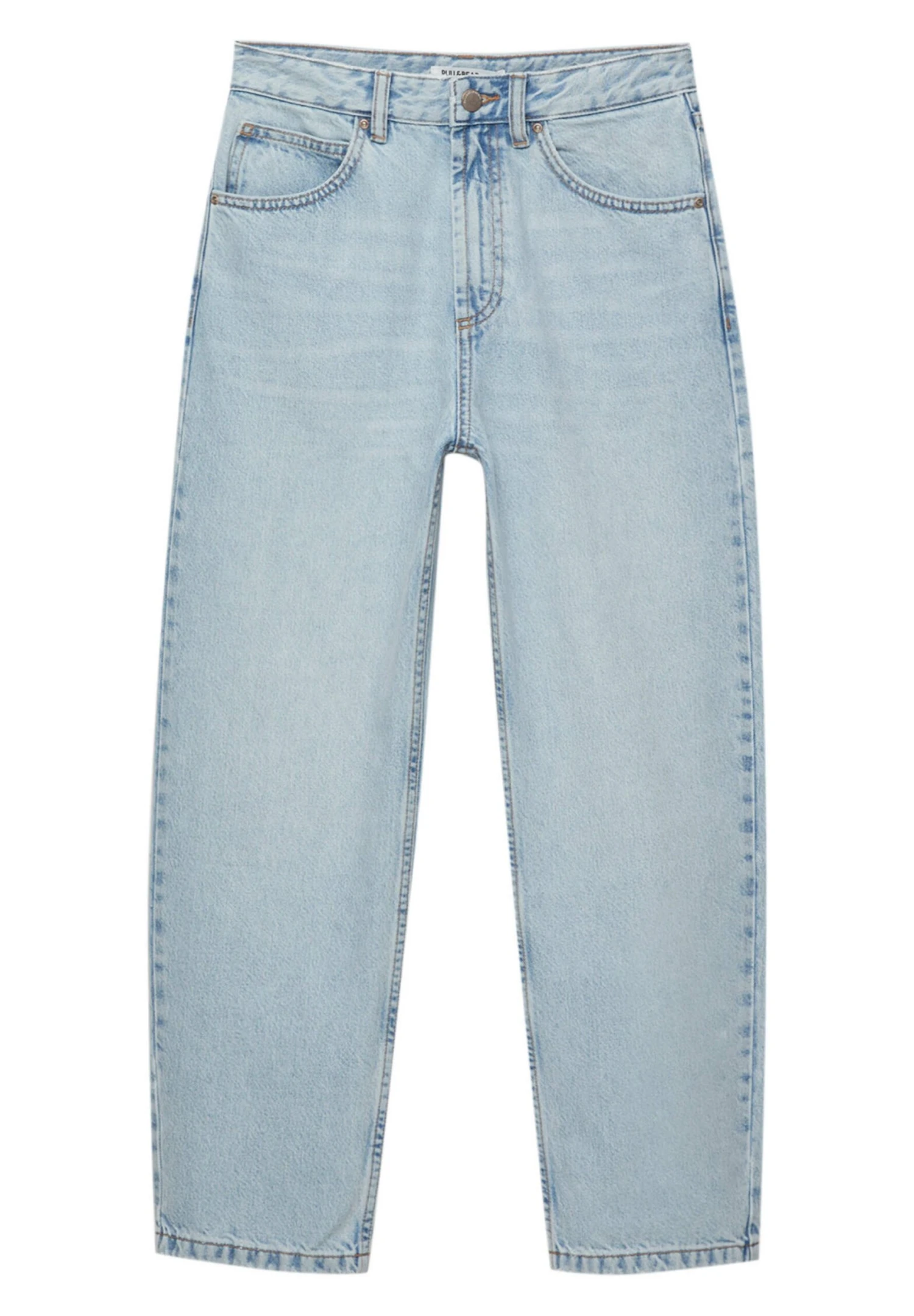 PULL & BEAR Mid-Waist Barrel- Straight Leg Jeans – Light Blue Denim