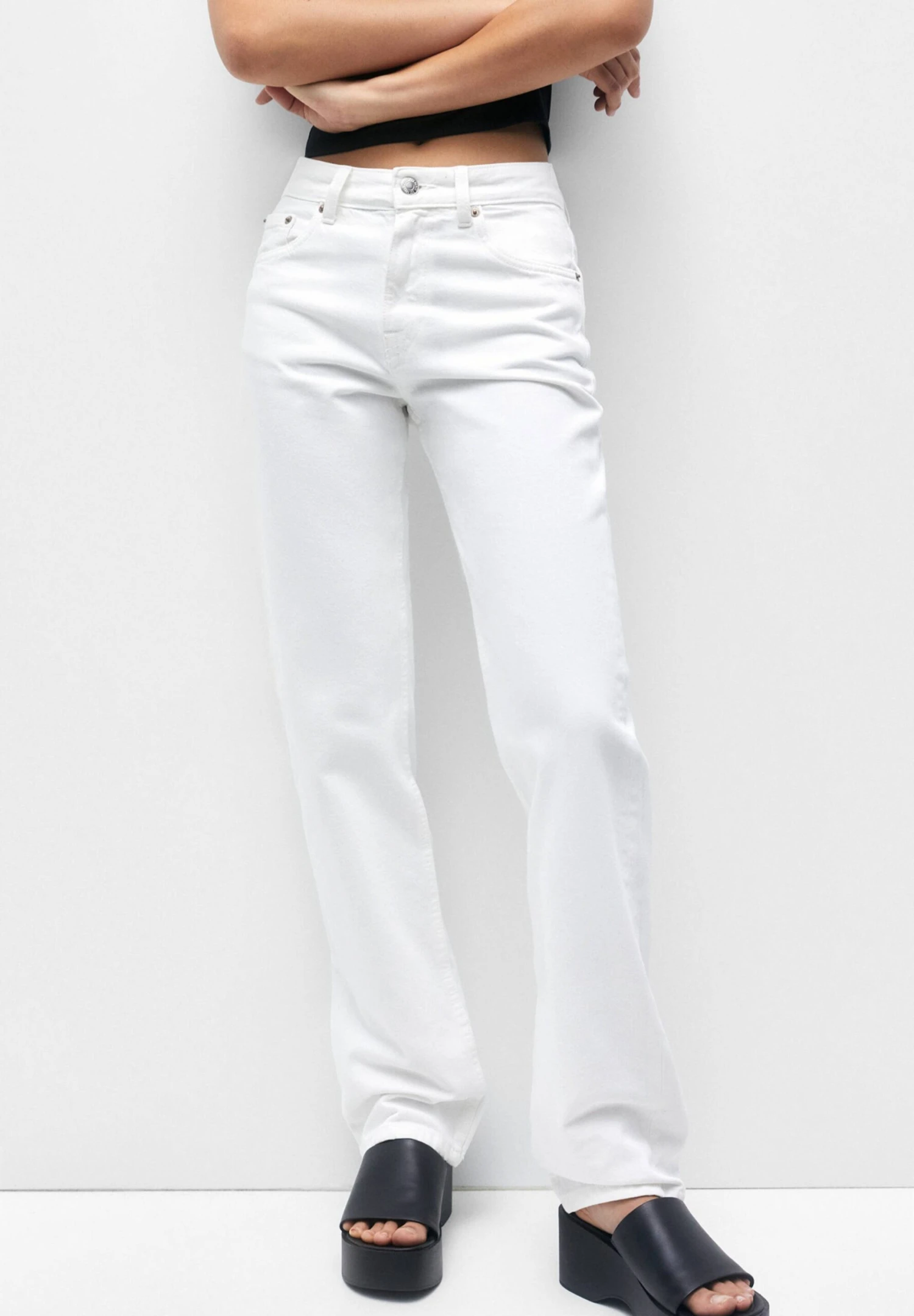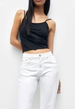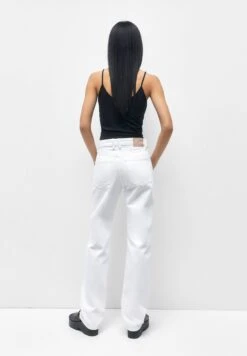 PULL & BEAR Mid Waist Faded – Straight Leg Jeans – White