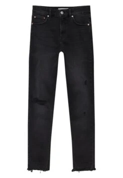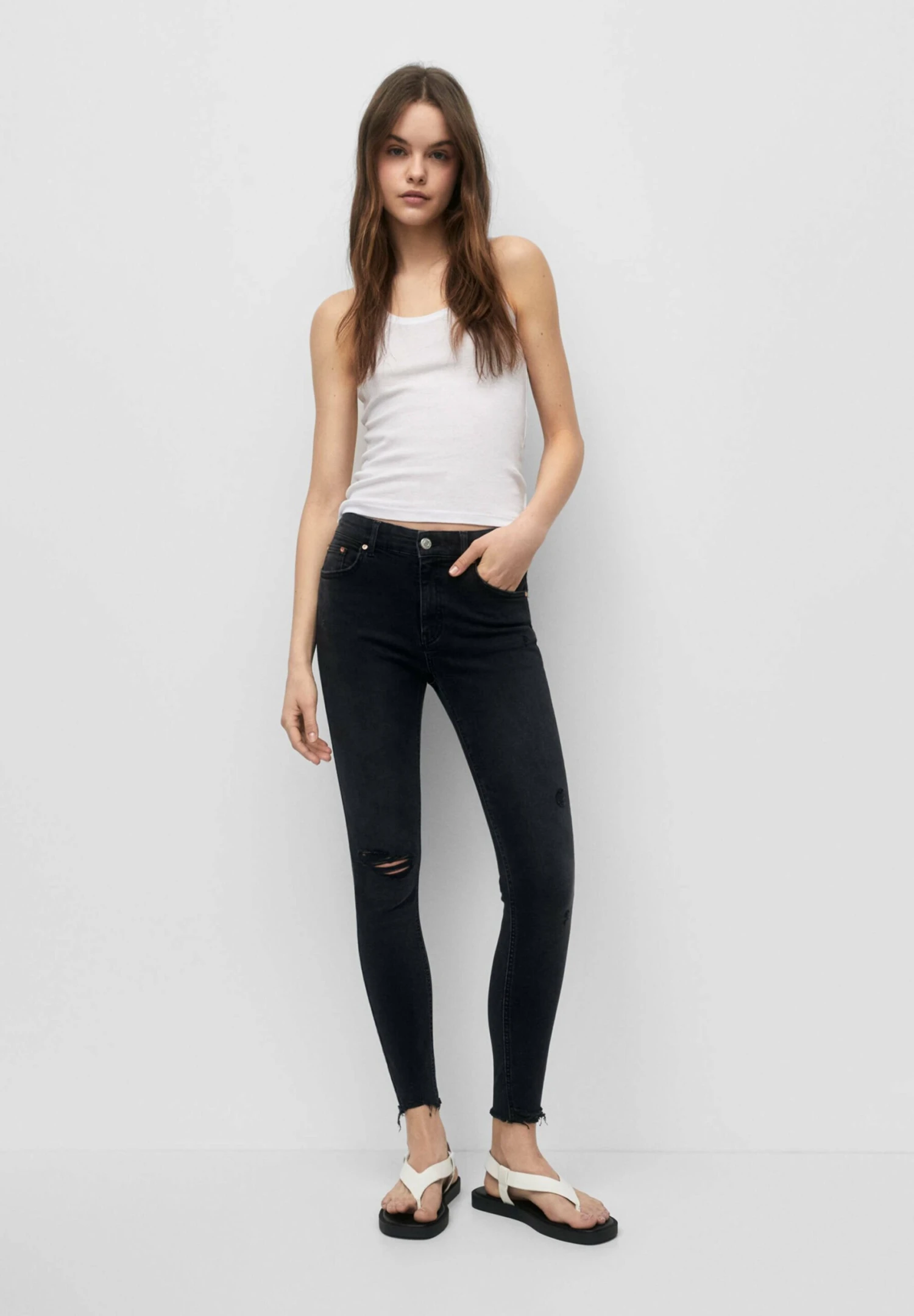 PULL & BEAR Mid Waist Ripped – Jeans Skinny Fit – Black
