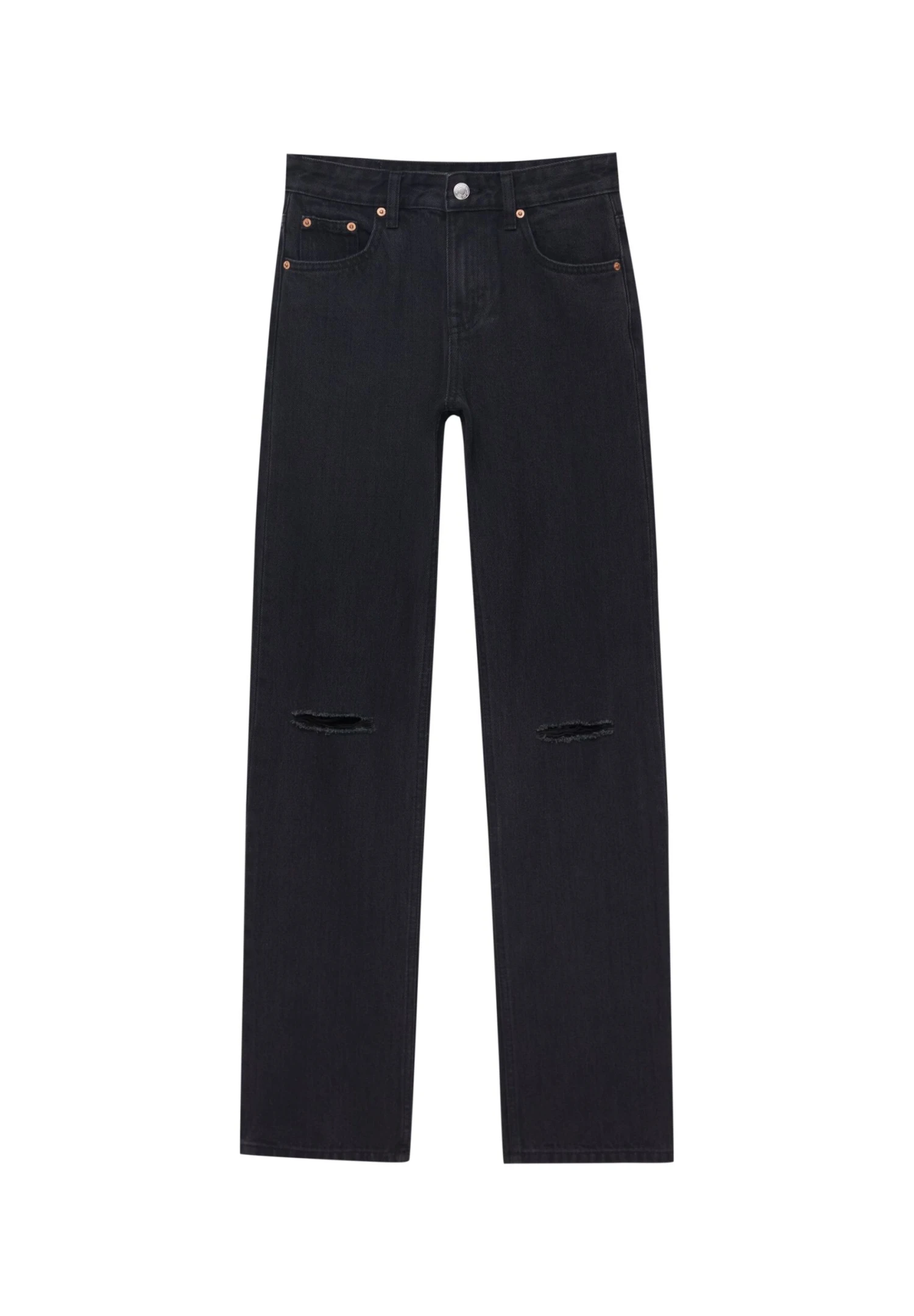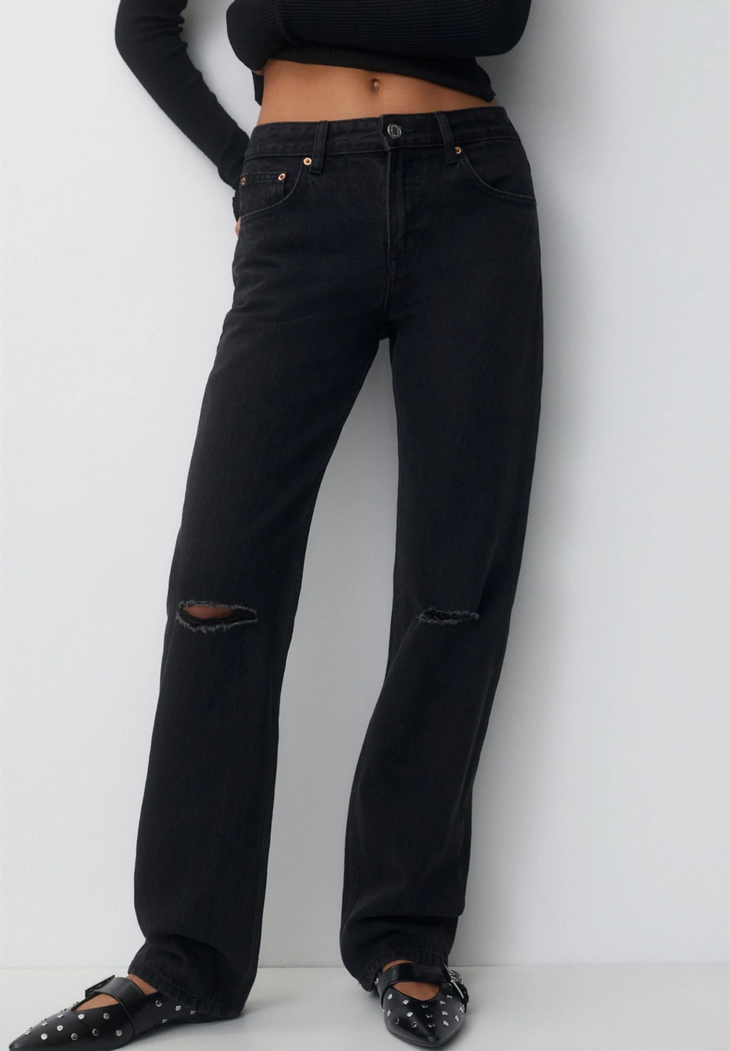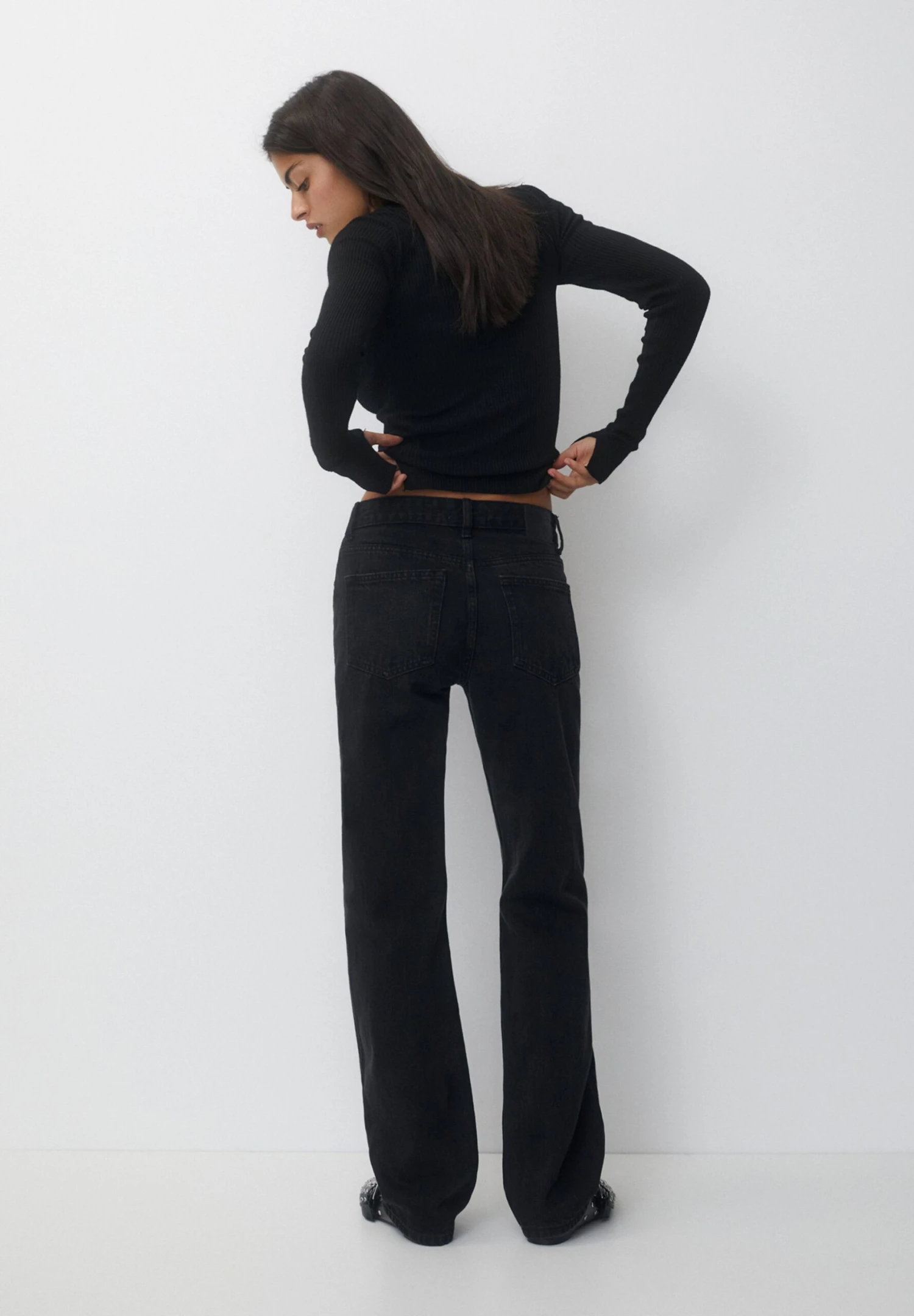 PULL & BEAR Mid-Waist – Straight Leg Jeans – Black
