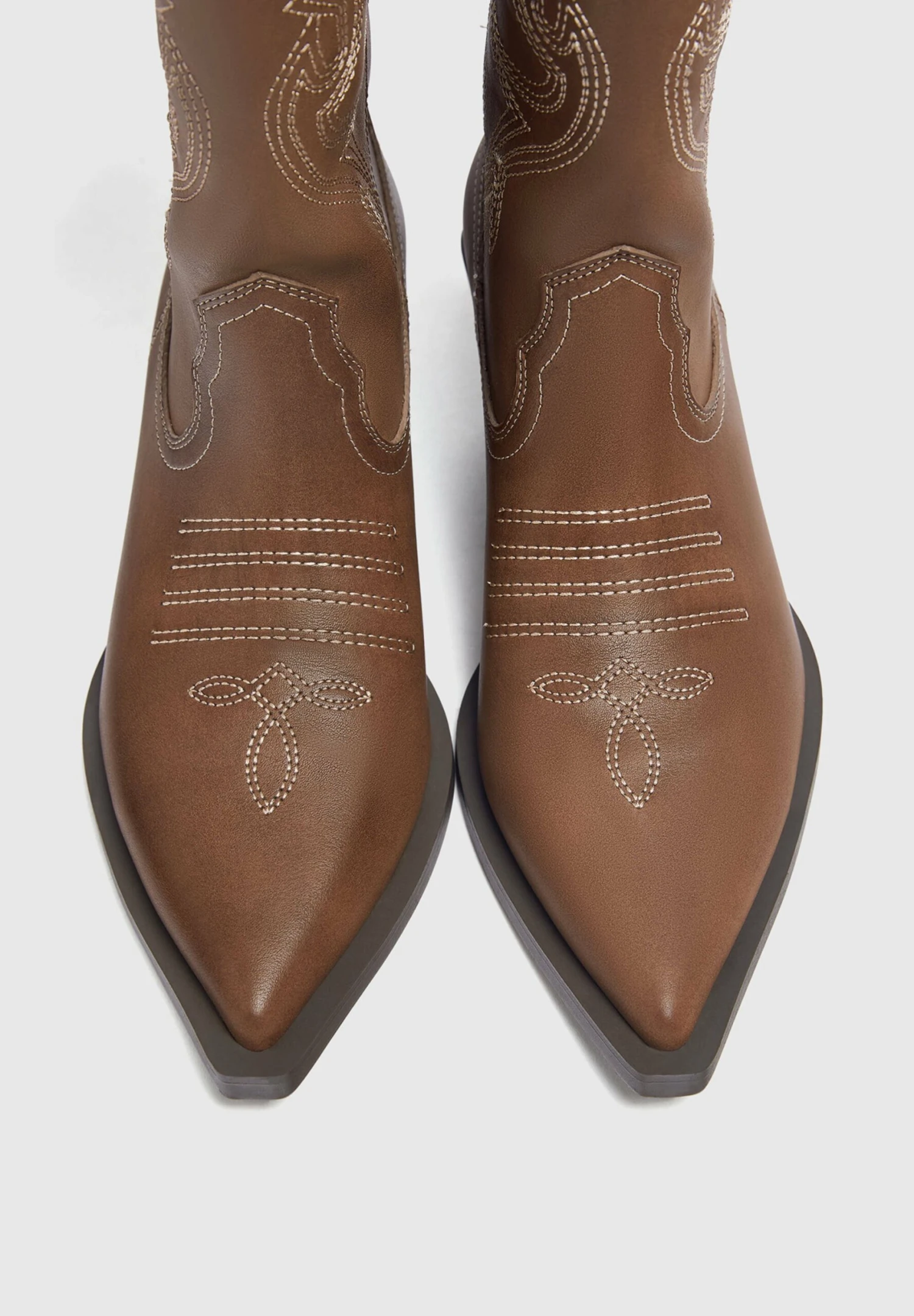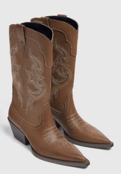 PULL & BEAR Mit Stickereien – Cowboy-/Bikerlaarzen – Brown