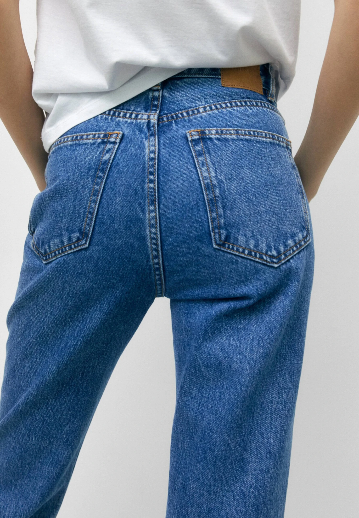 PULL & BEAR Mom – Jeans Tapered Fit – Mottled Dark Blue