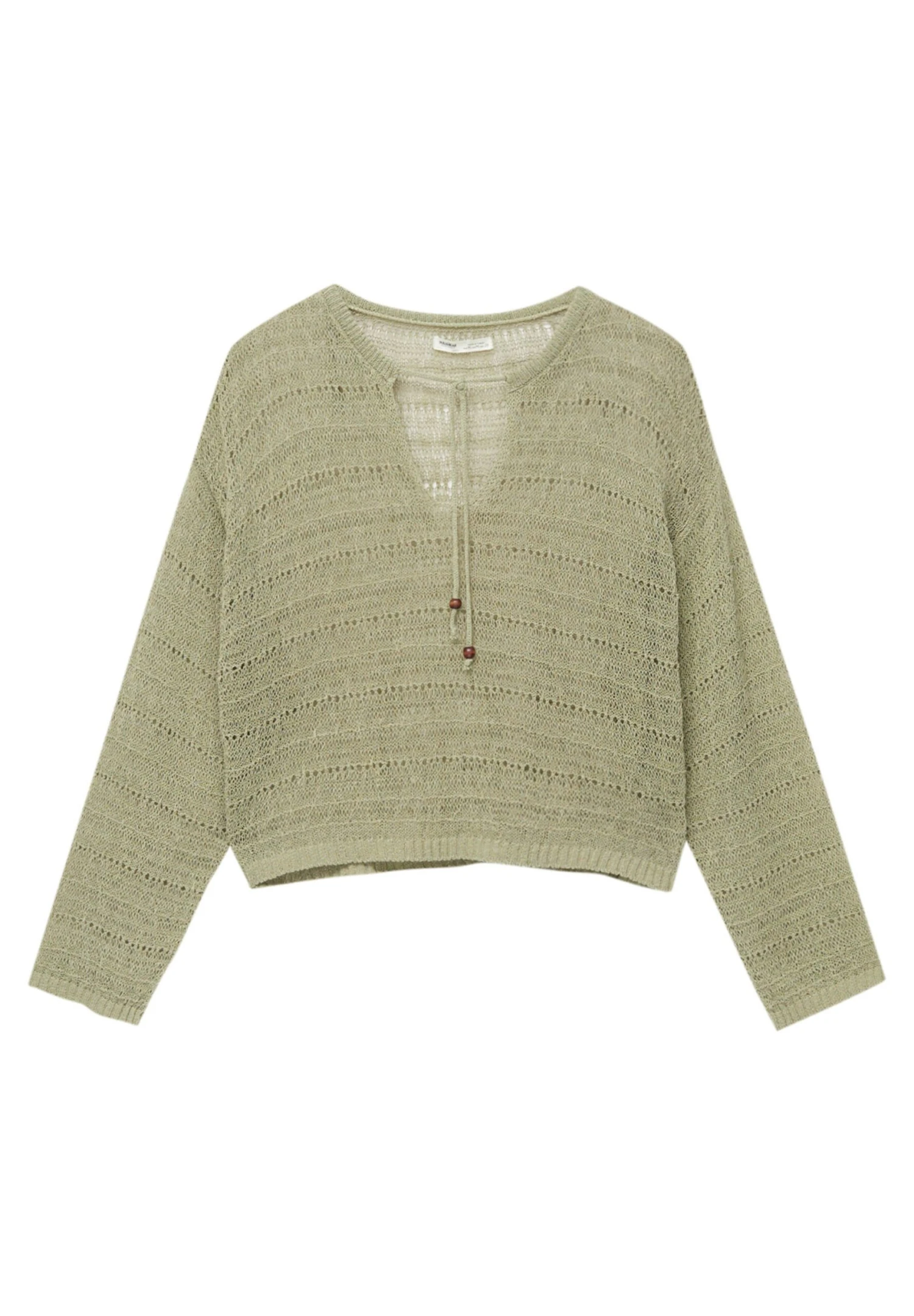 PULL & BEAR Open With Drawstring – Trui – Khaki
