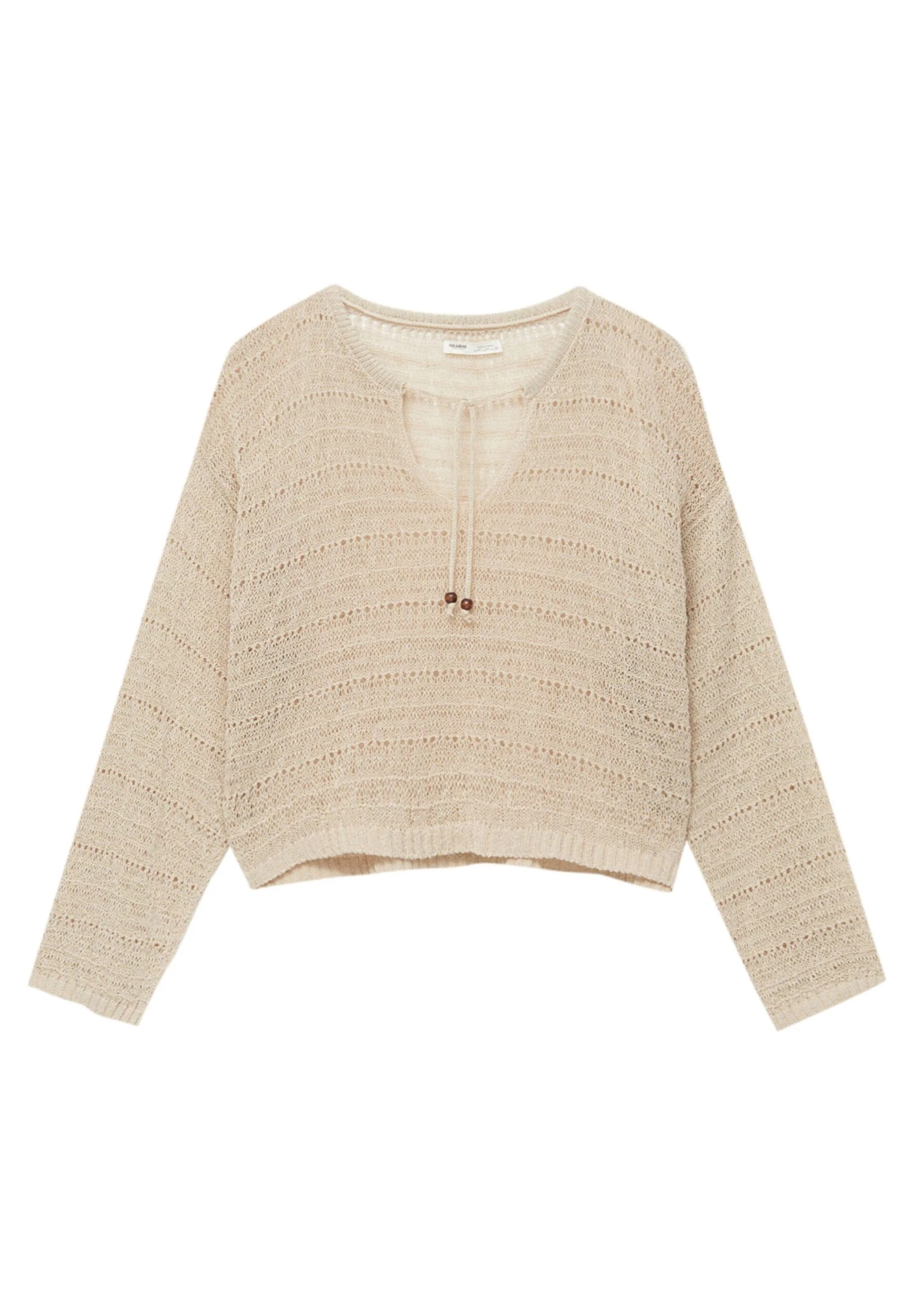 PULL & BEAR Open With Drawstring – Trui – Sand