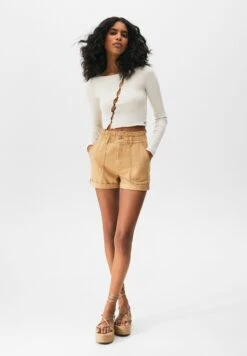 PULL & BEAR Paperbag- Jeansshort – Camel