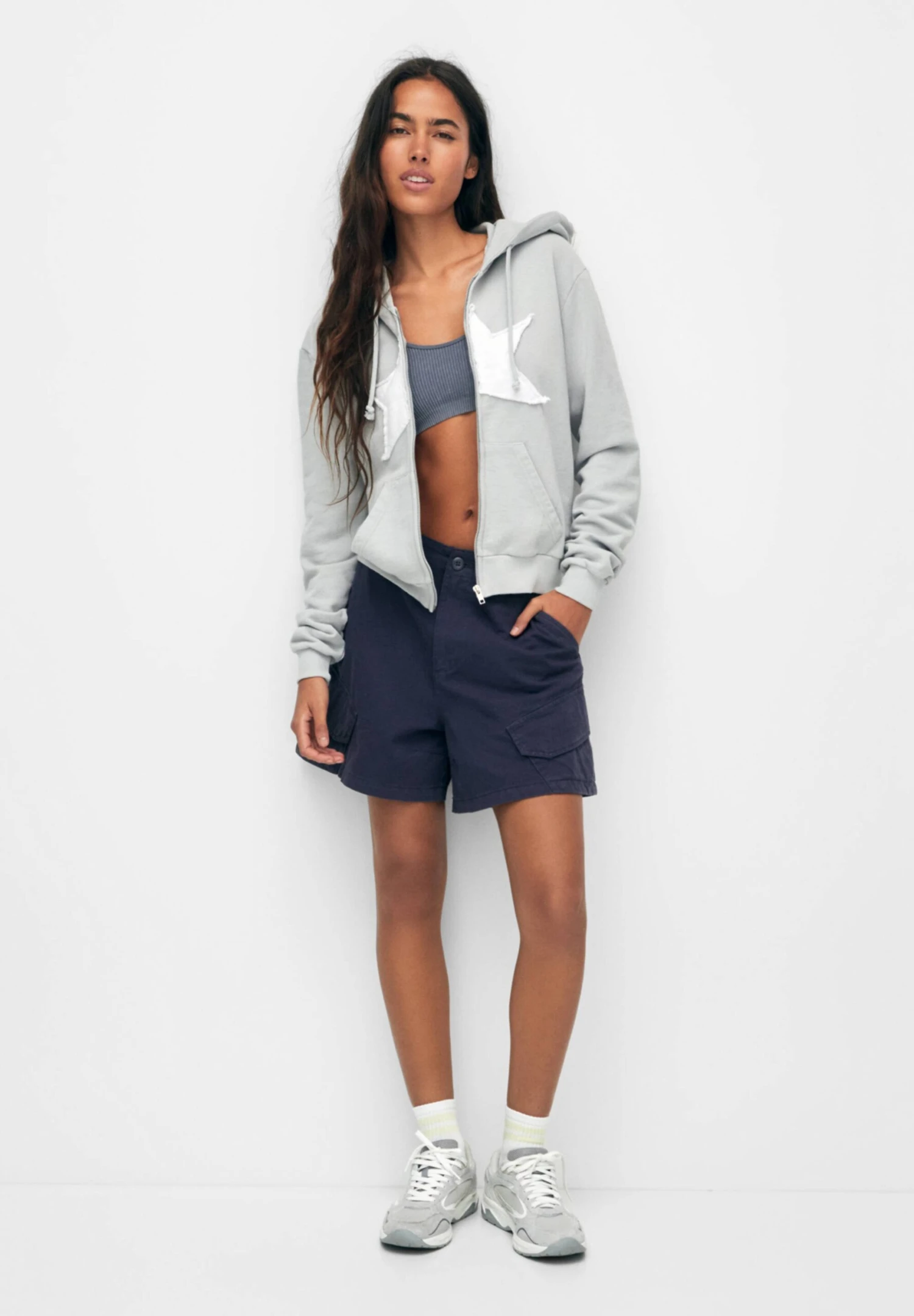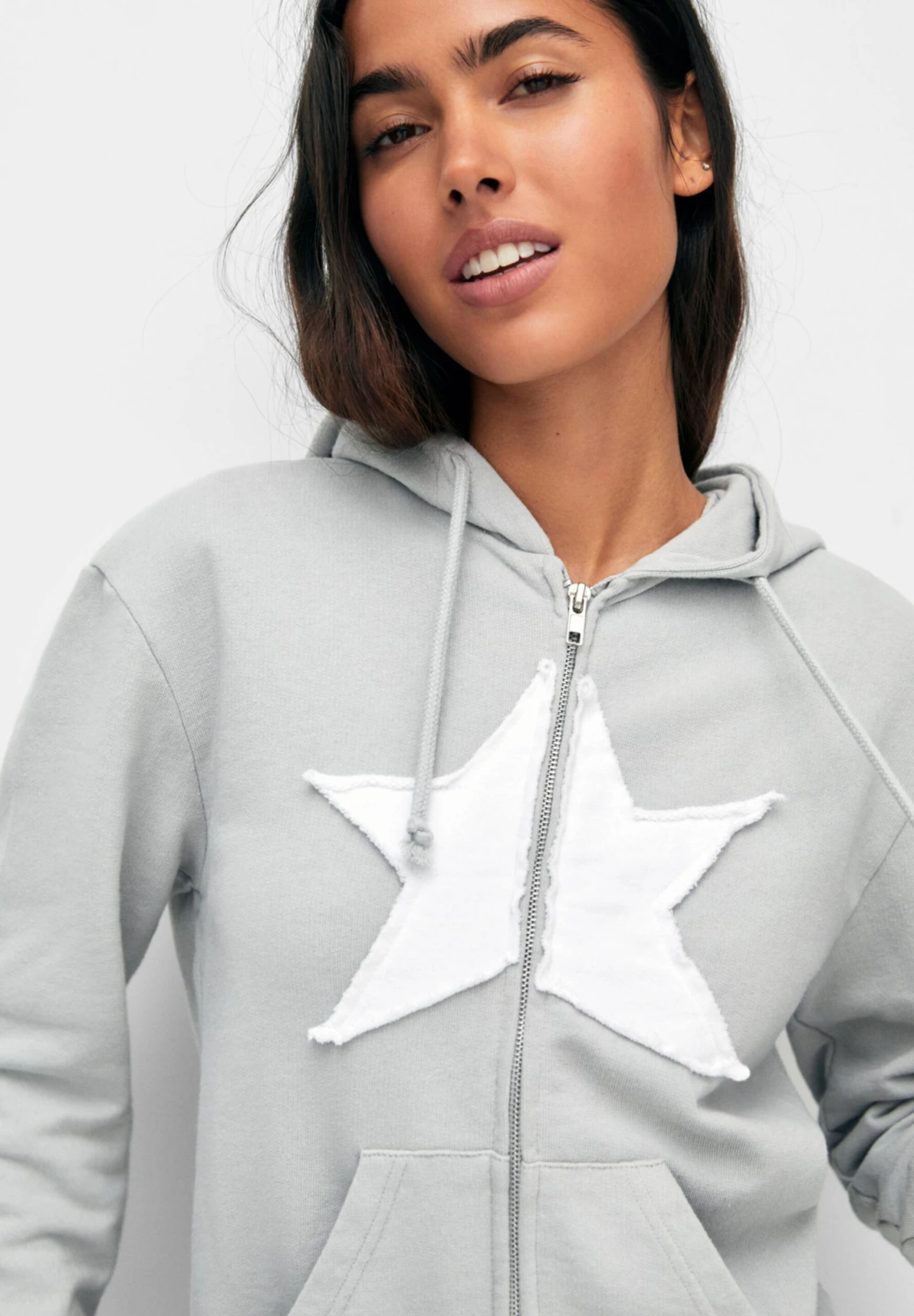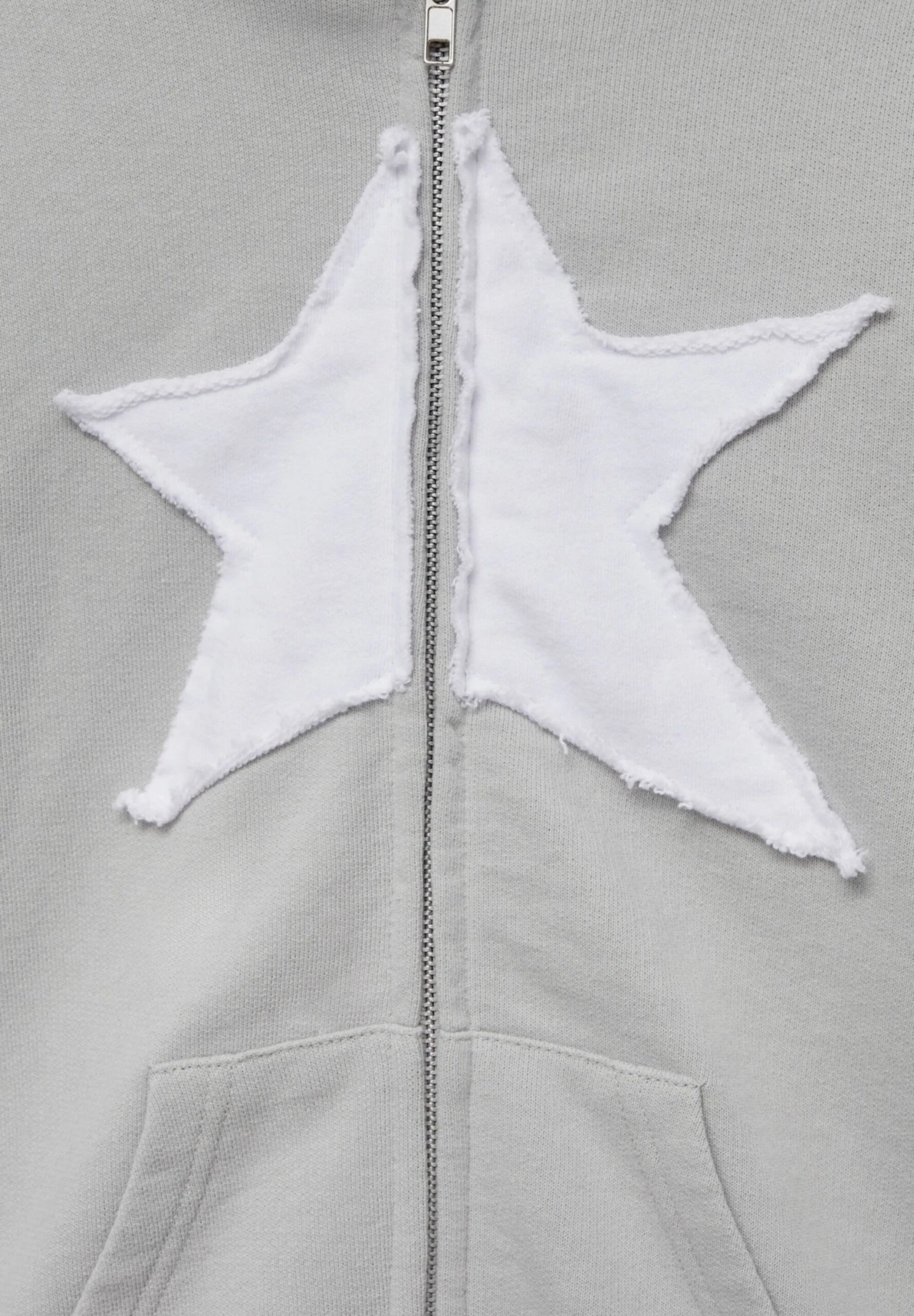 PULL & BEAR Patchwork Star- Sweater Met Rits – Light Grey