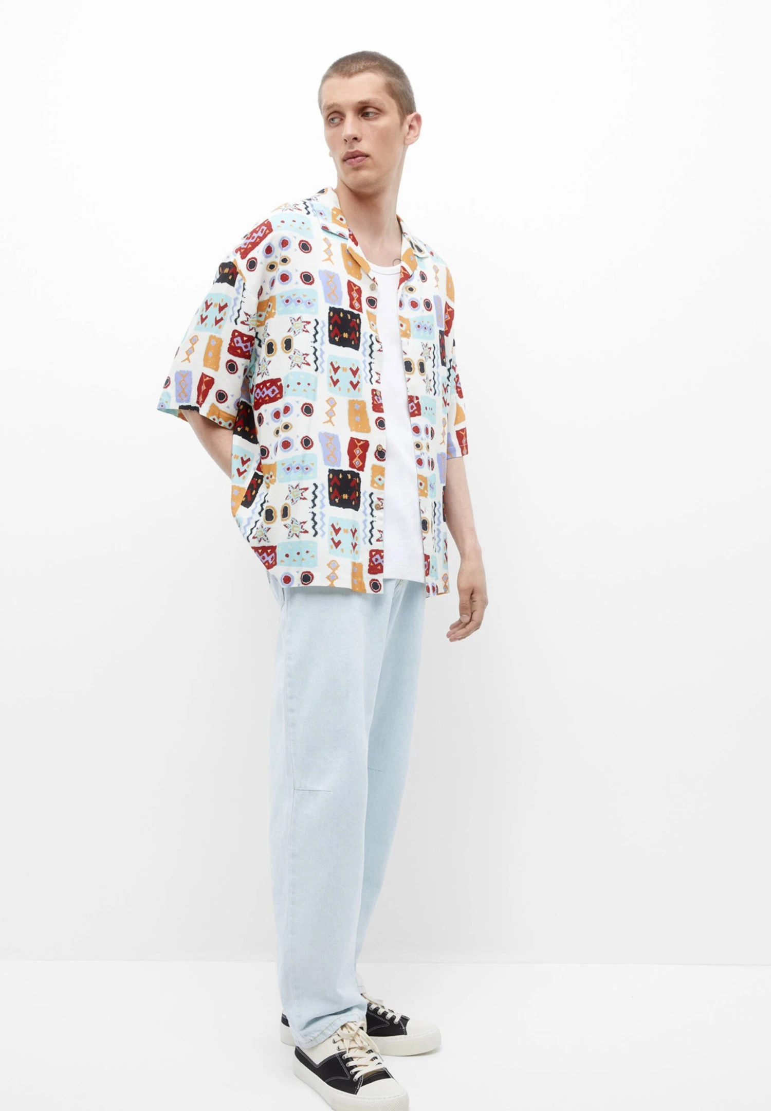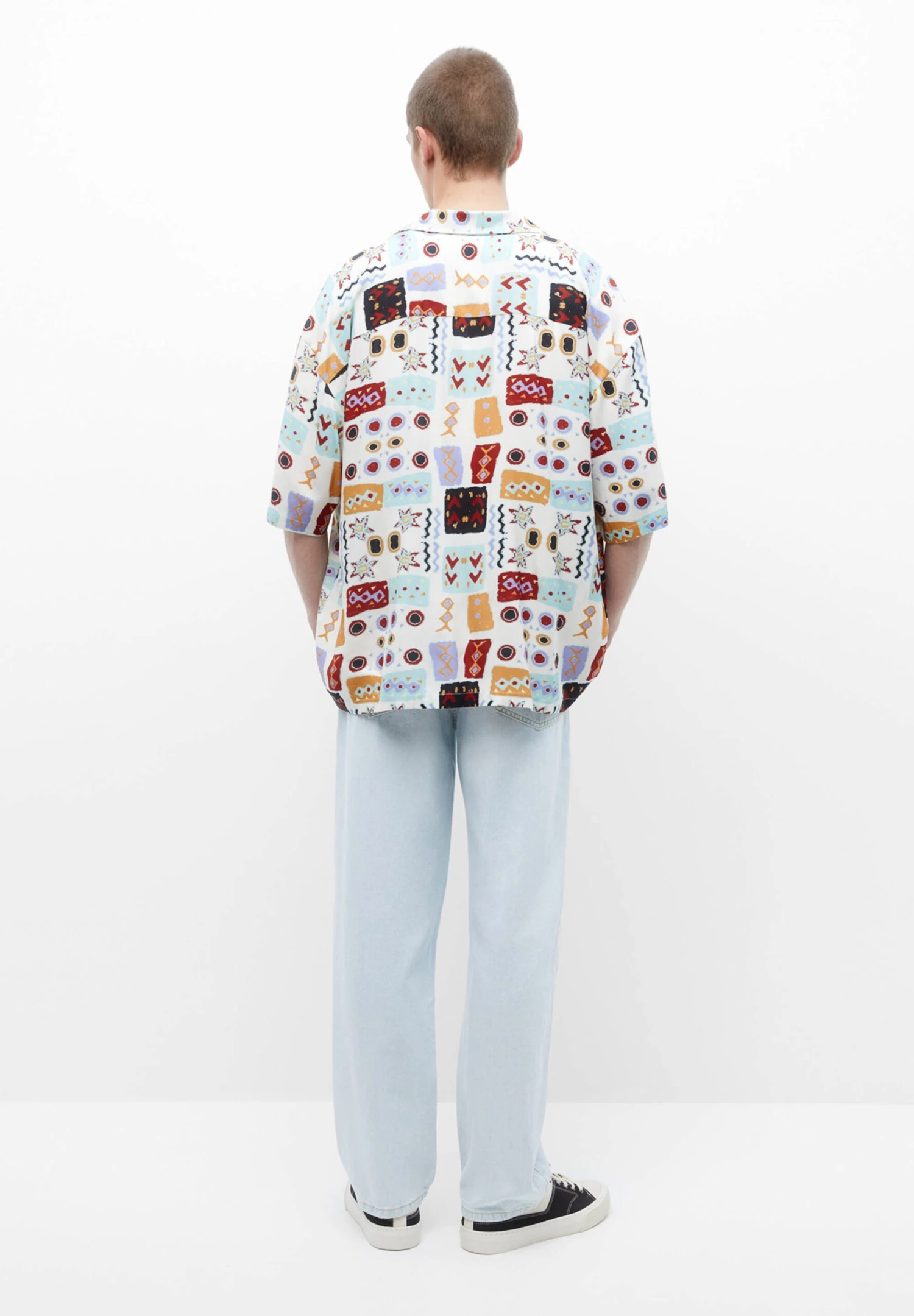 PULL & BEAR Print Short Sleeve – Overhemd – White