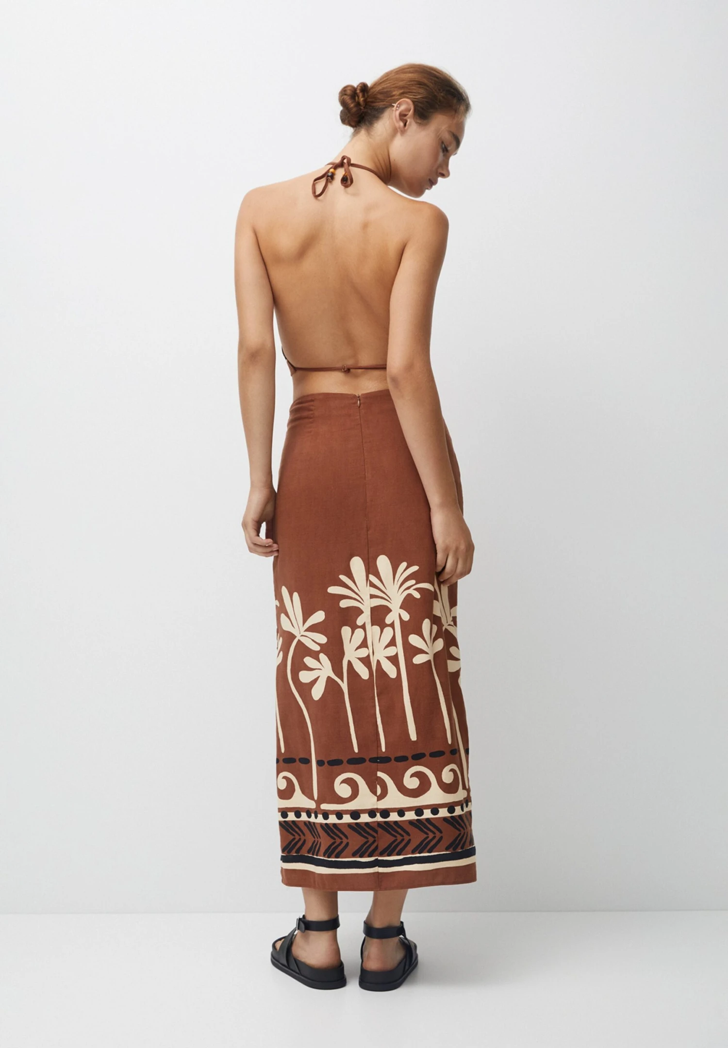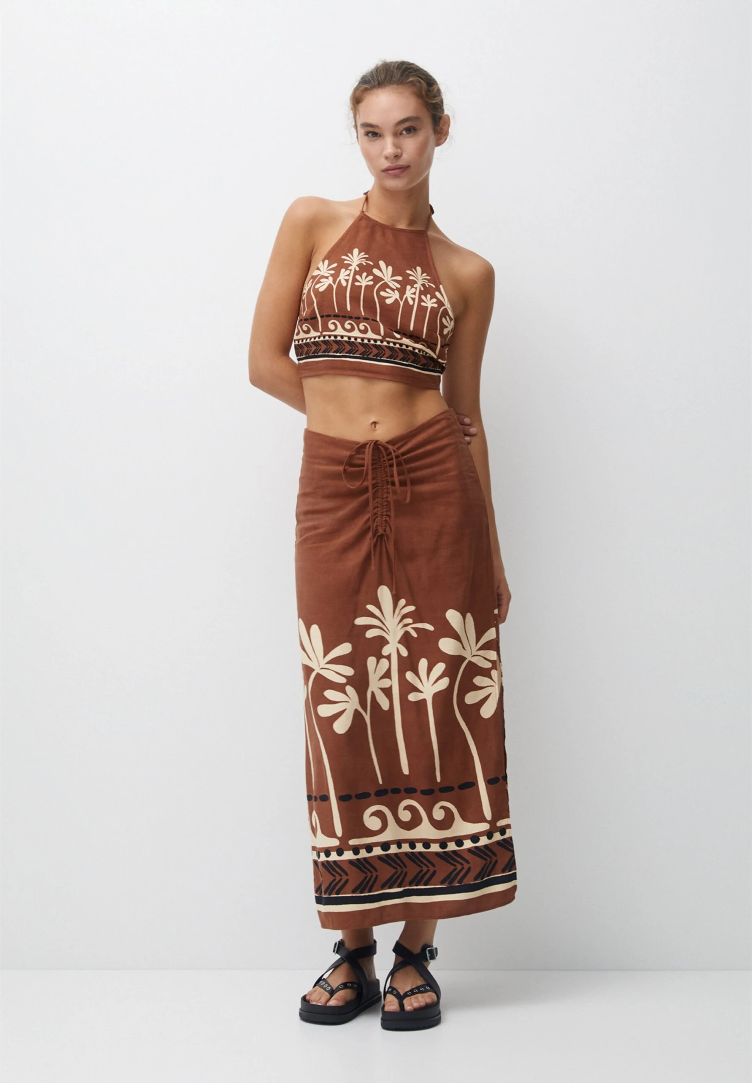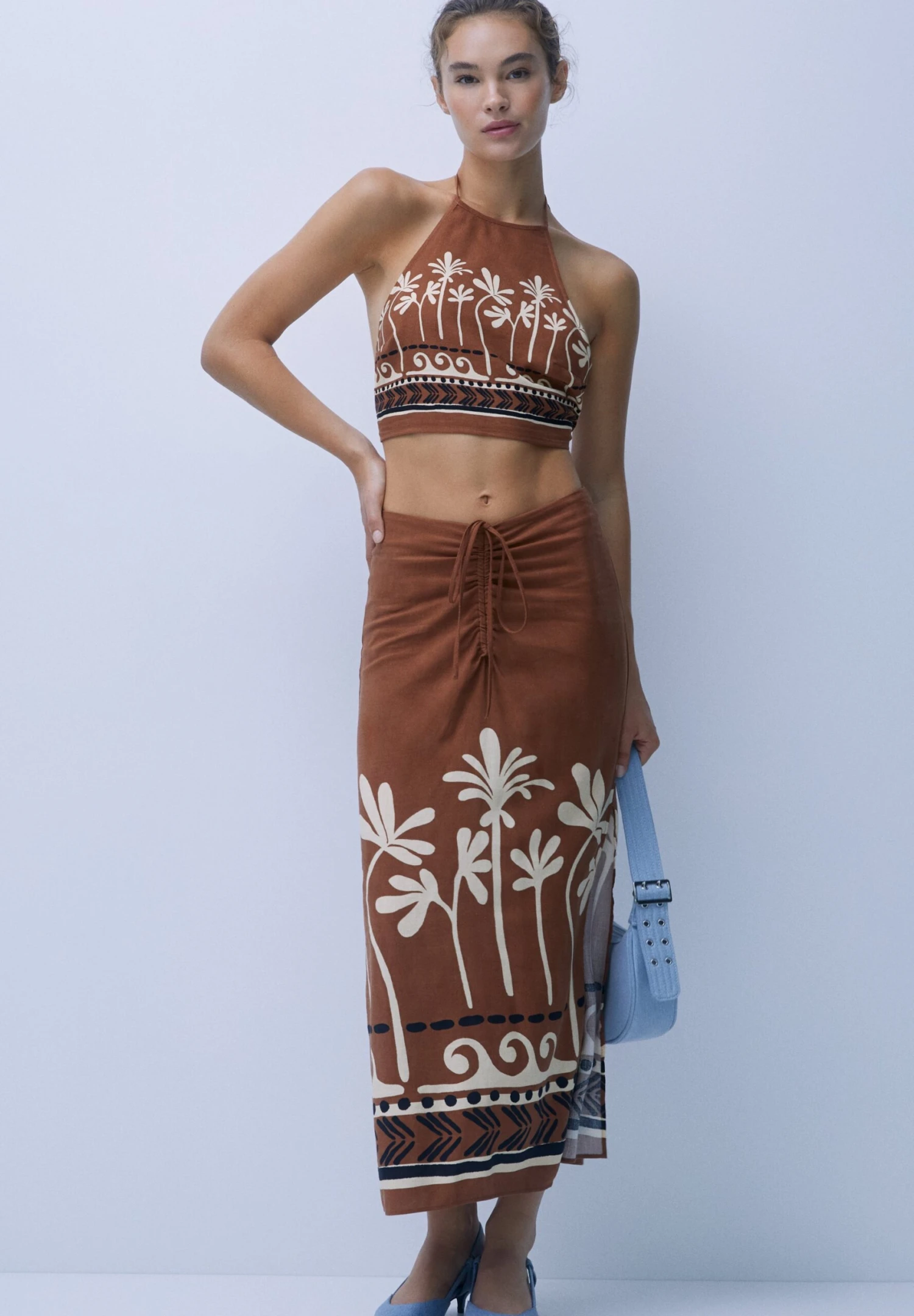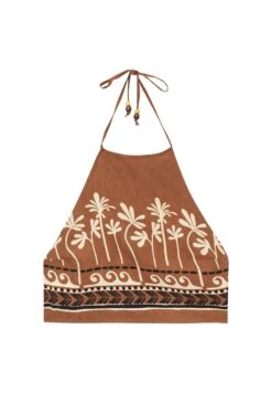PULL & BEAR Printed Halter – Crop – Top – Light Brown
