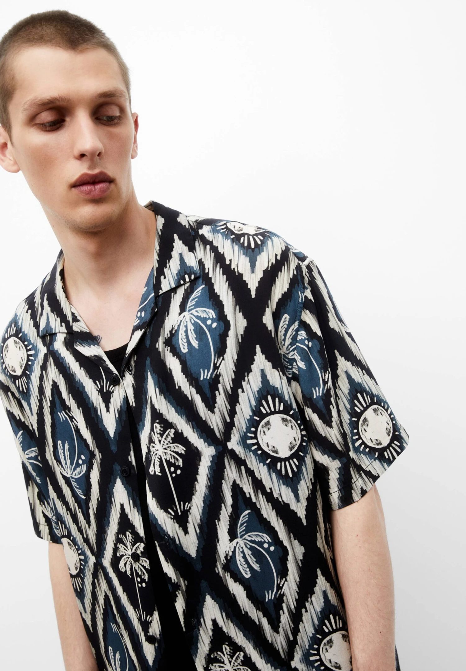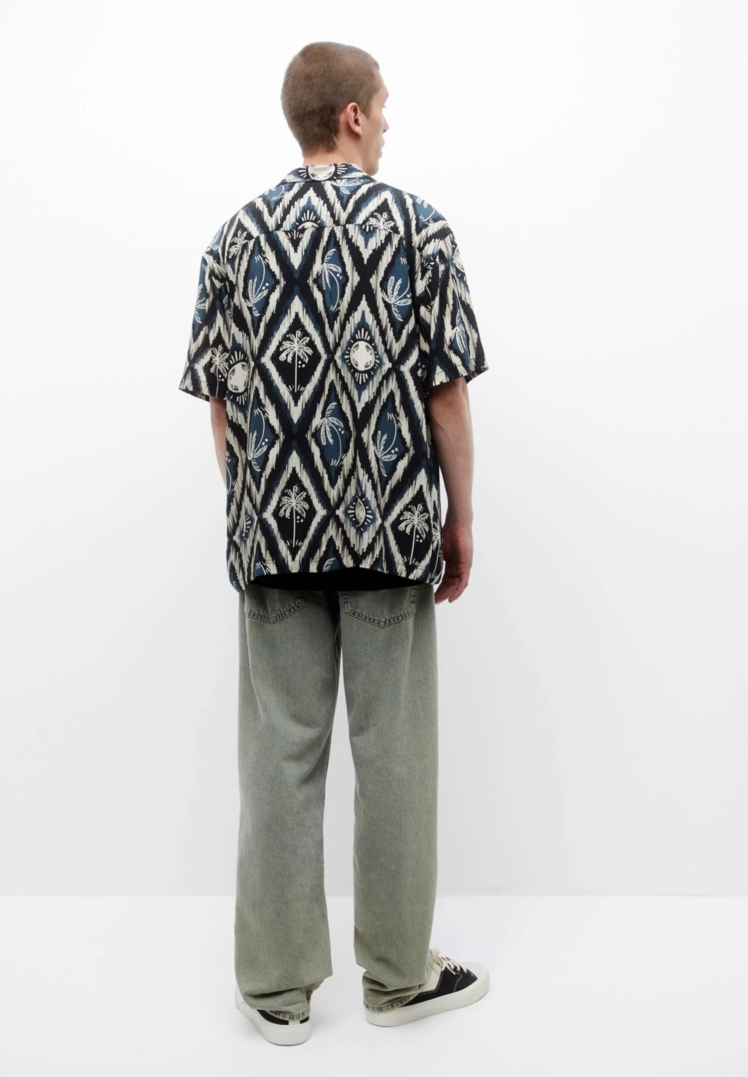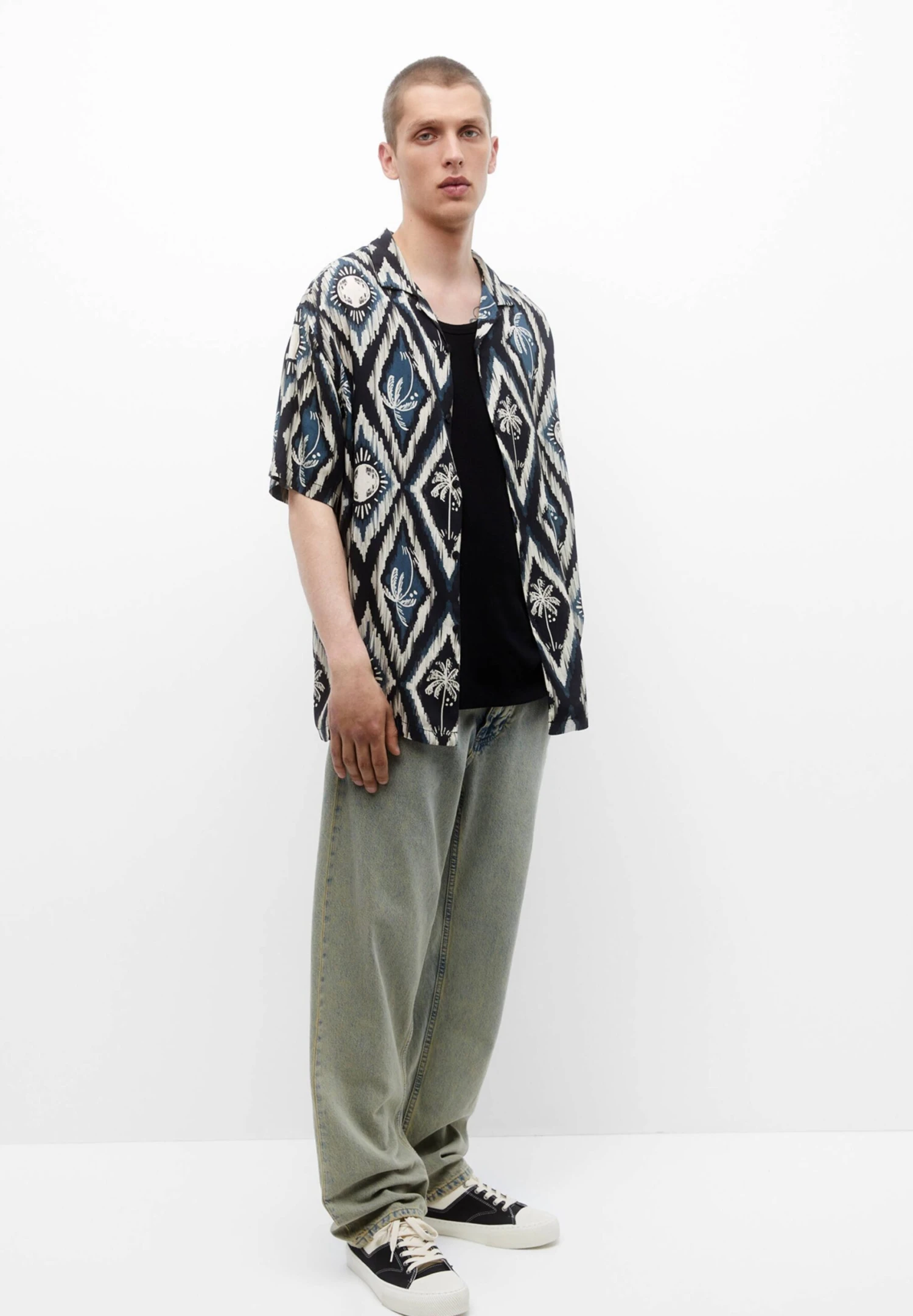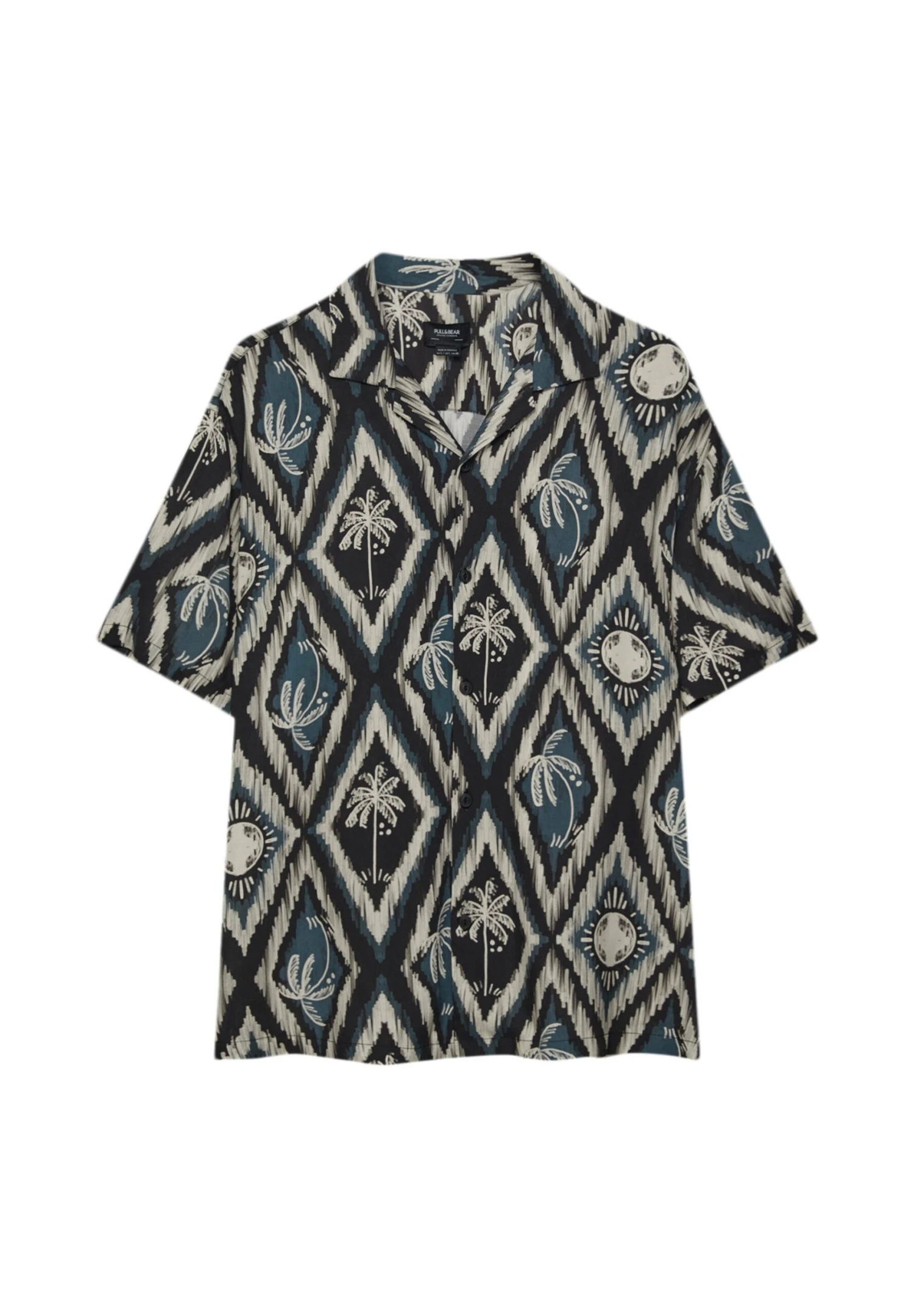 PULL & BEAR Printed Short Sleeve – Overhemd – Black