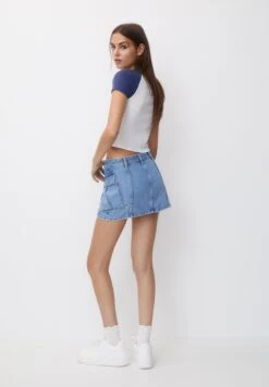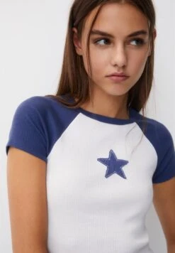 PULL & BEAR Raglan Sleeve With Star Detail – T-Shirt Print – Blue