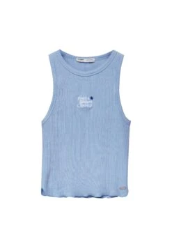 PULL & BEAR Ribbed Tank With Embroidered Slogan – Top – Blue