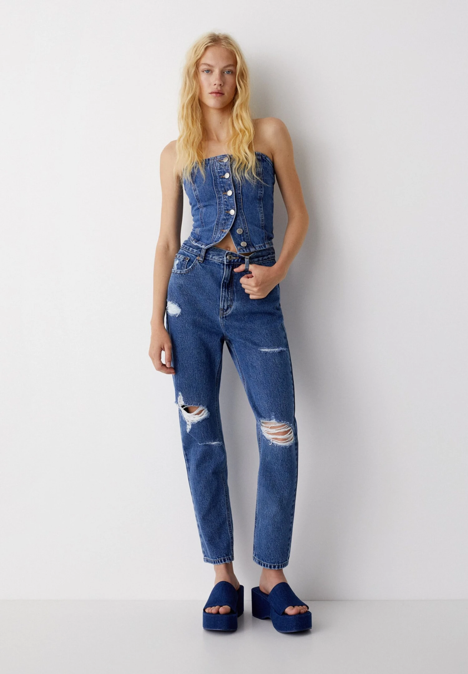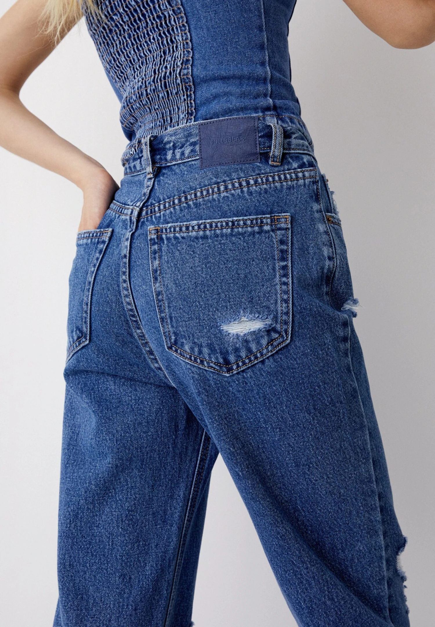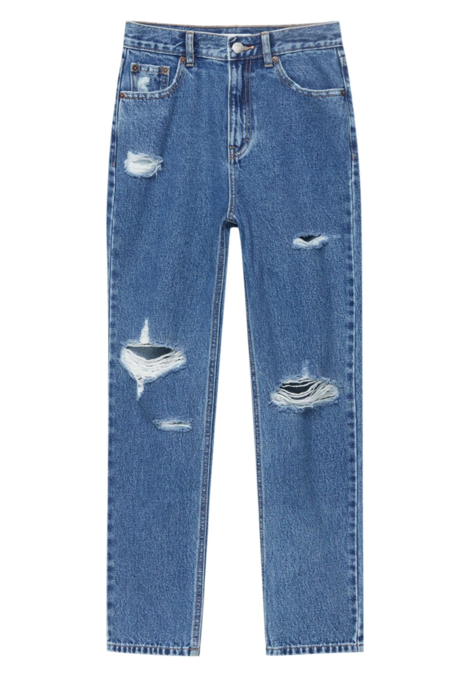 PULL & BEAR Ripped- Straight Leg Jeans – Dark Blue Denim