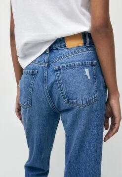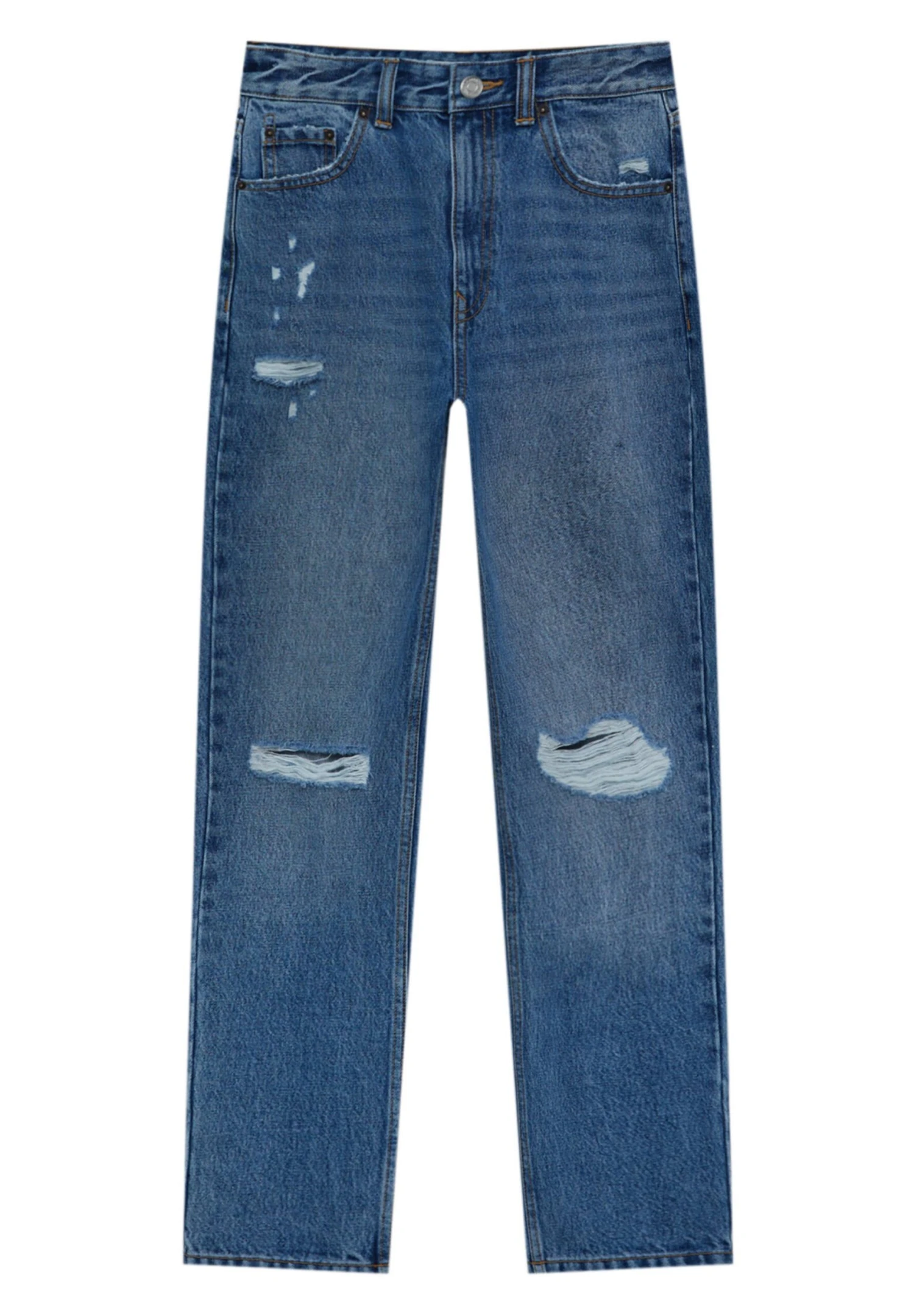 PULL & BEAR Ripped- Straight Leg Jeans – Dark Blue