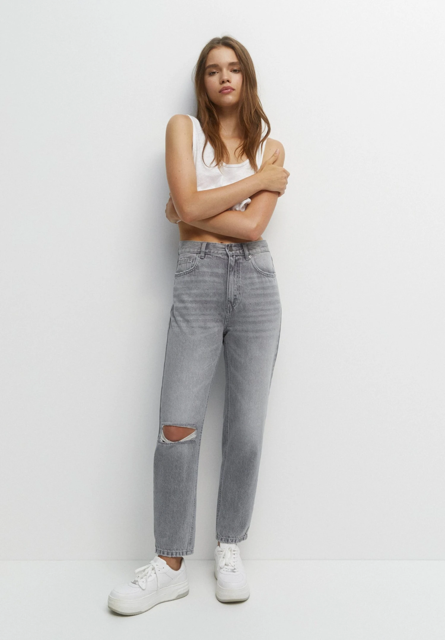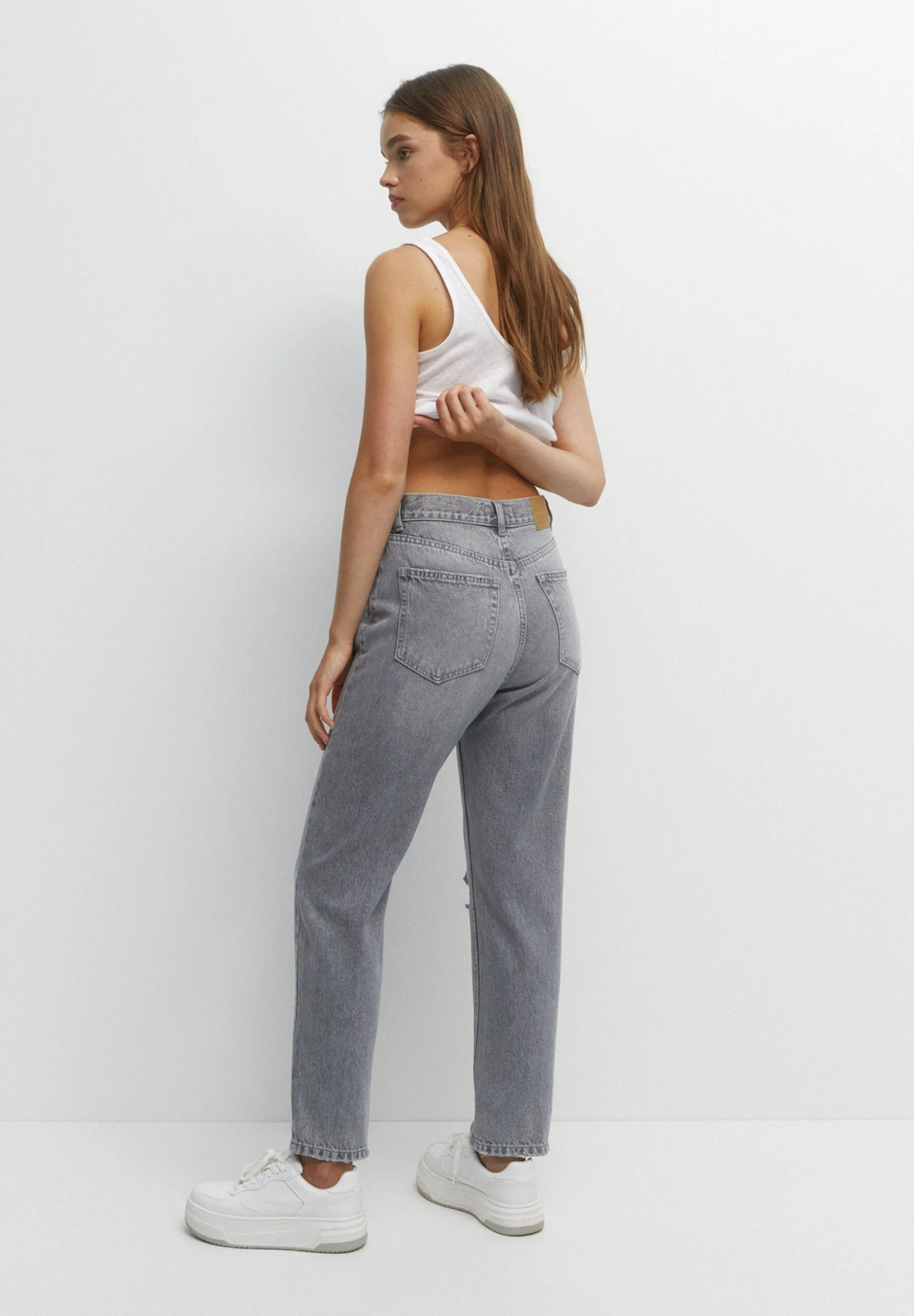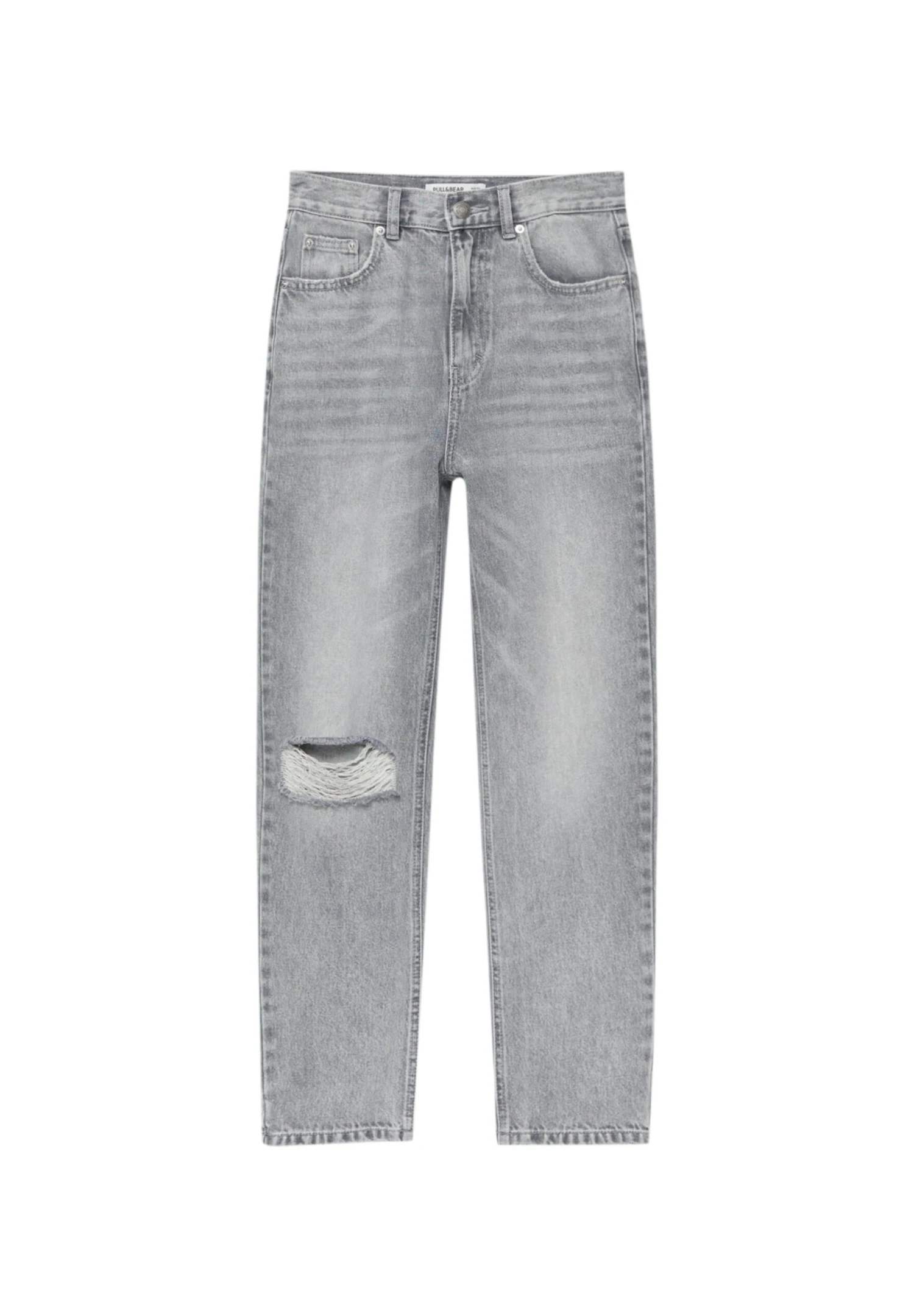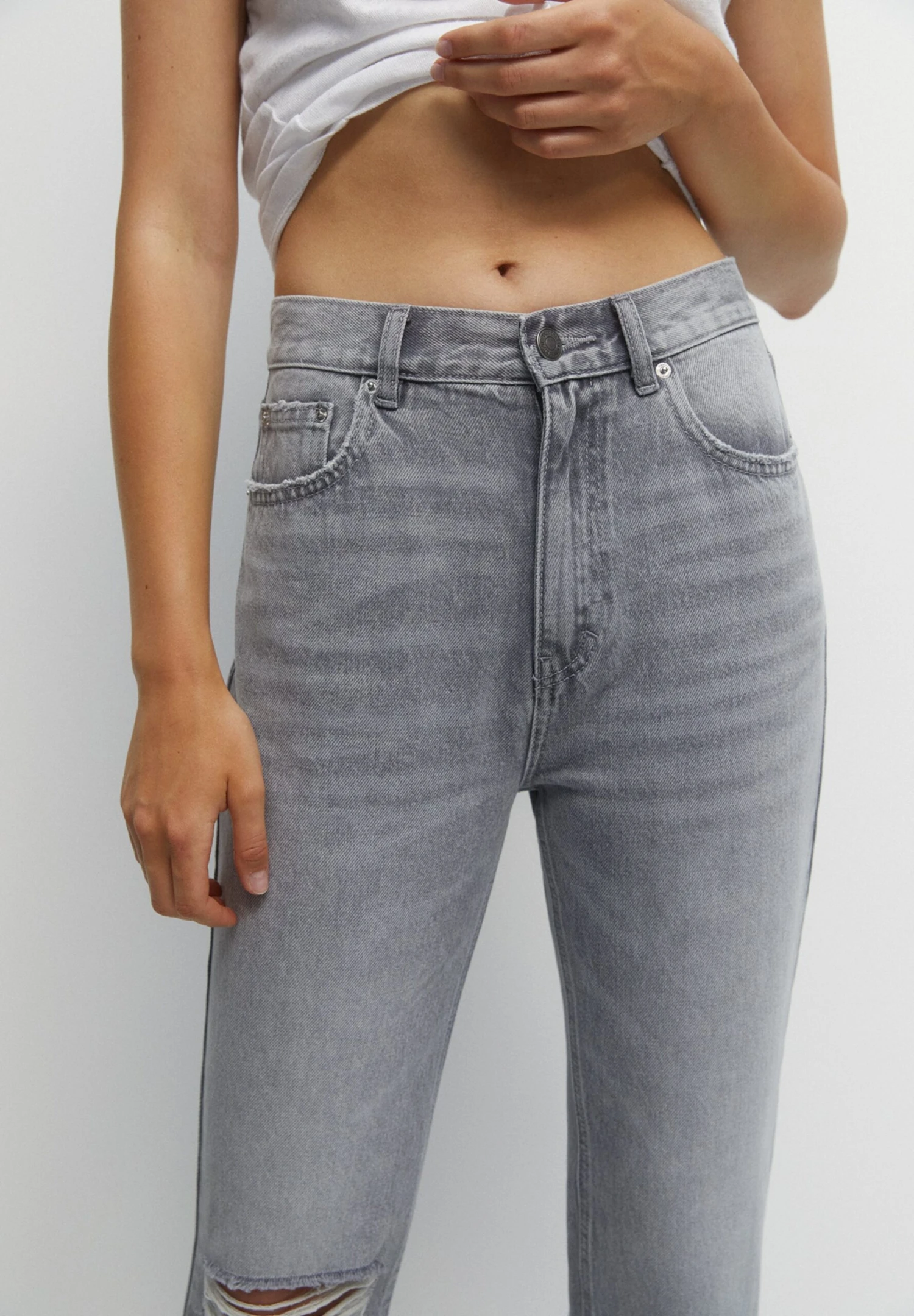 PULL & BEAR Ripped- Straight Leg Jeans – Grey