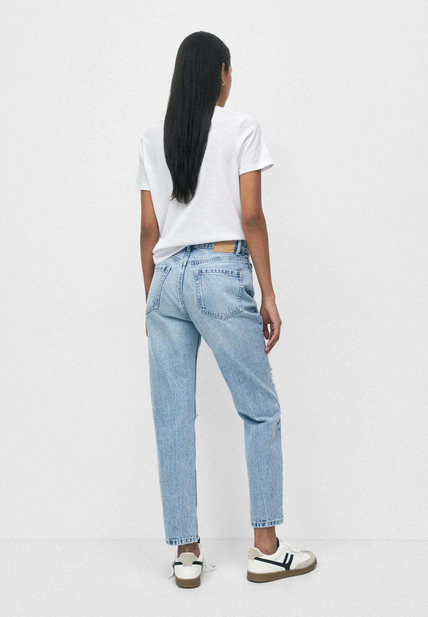 PULL & BEAR Ripped- Straight Leg Jeans – Stone Blue Denim