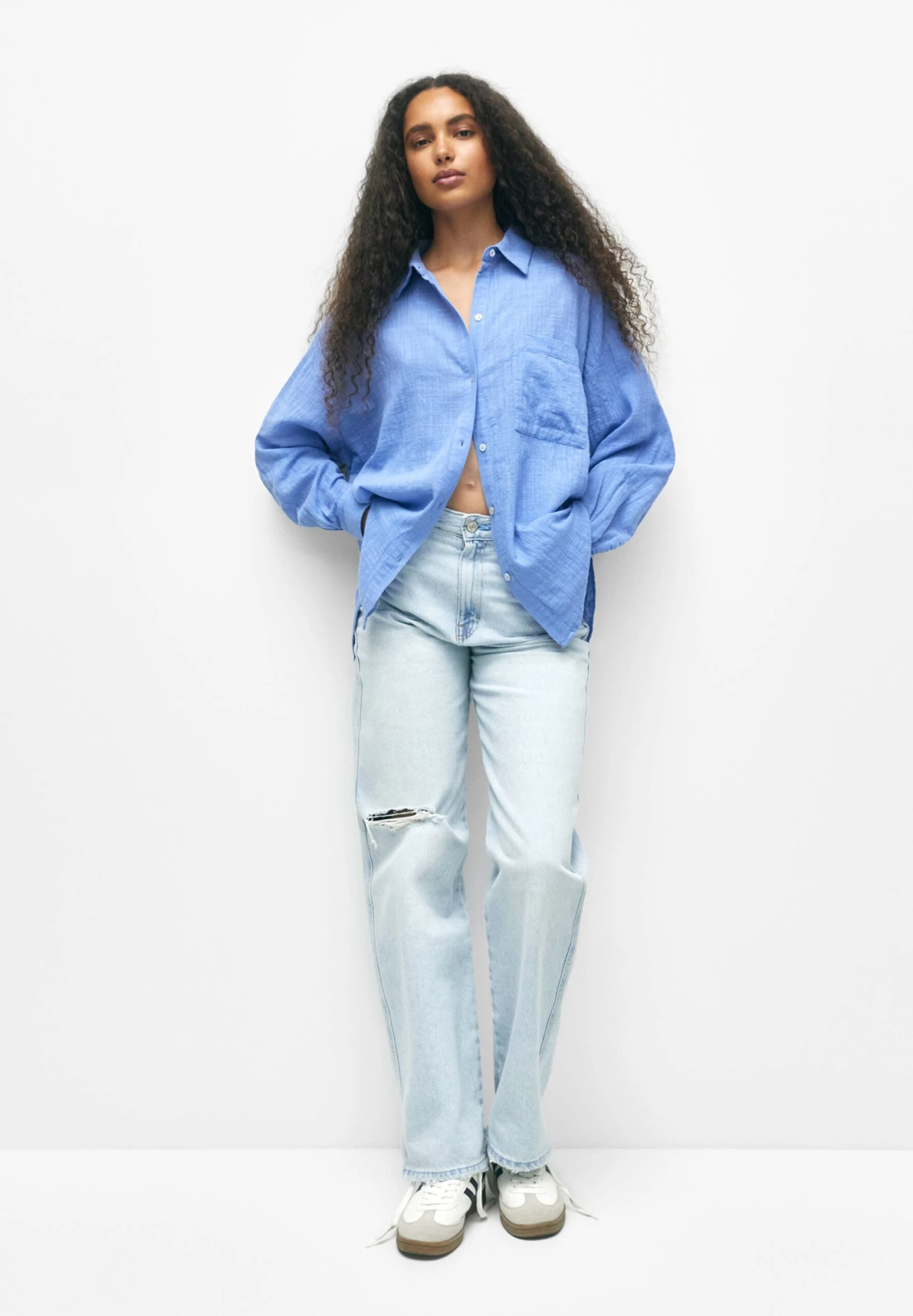 PULL & BEAR Rustic Oversized- Overhemdblouse – Blue