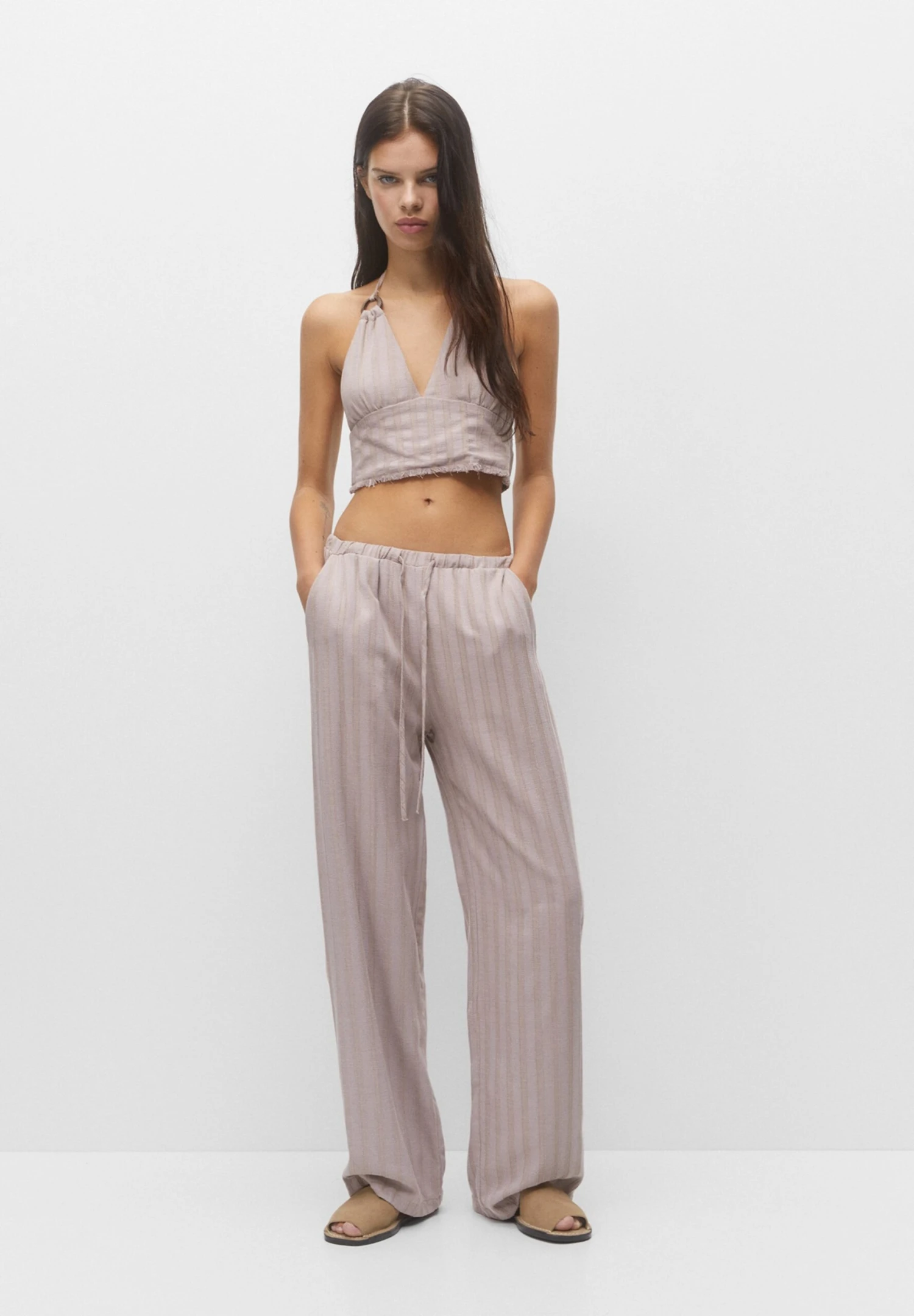 PULL & BEAR Rustic With Frayed Hem – Halter – Top – Light Brown