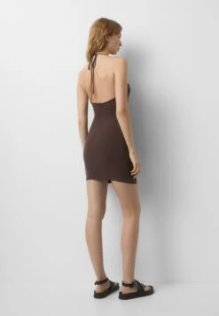 PULL & BEAR Short Gathered Halter Neck- Jurk – Brown
